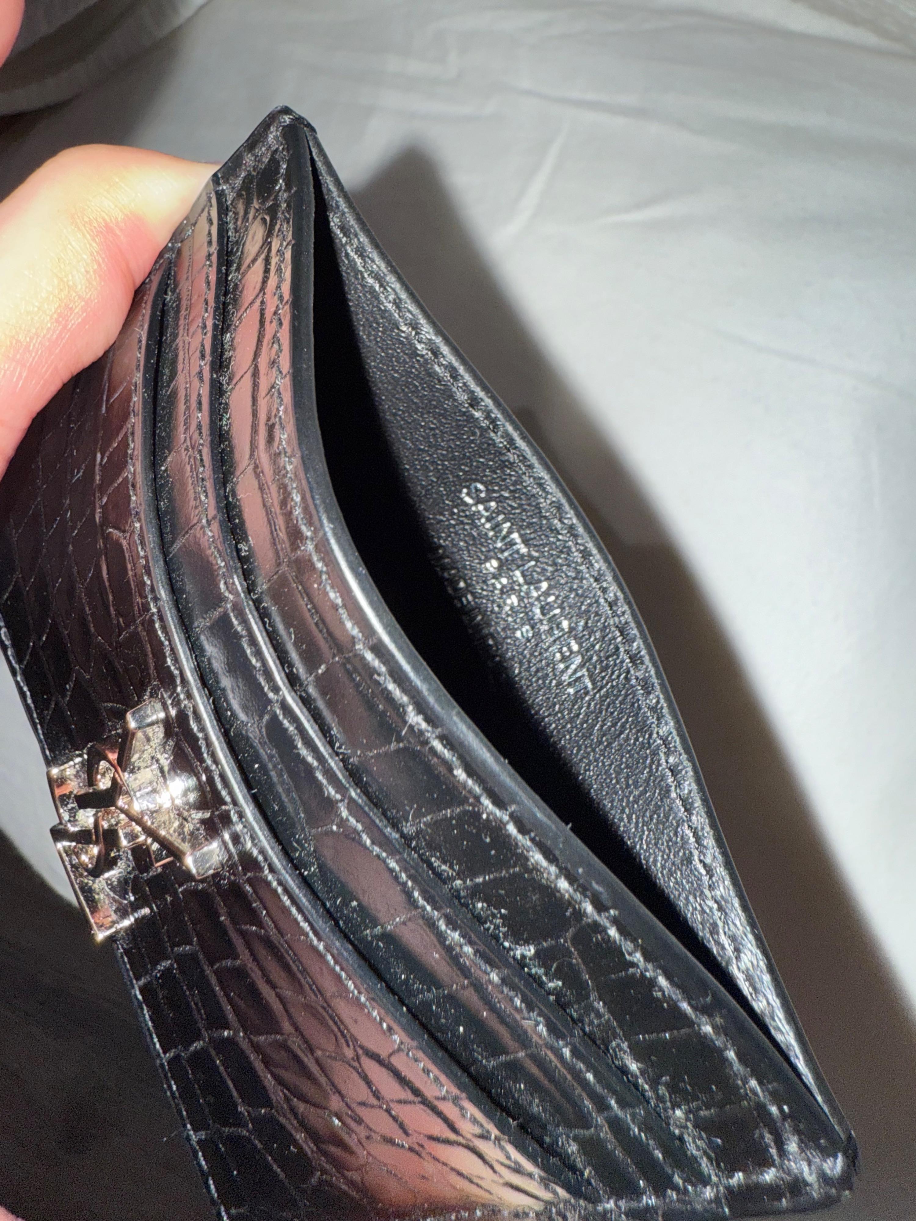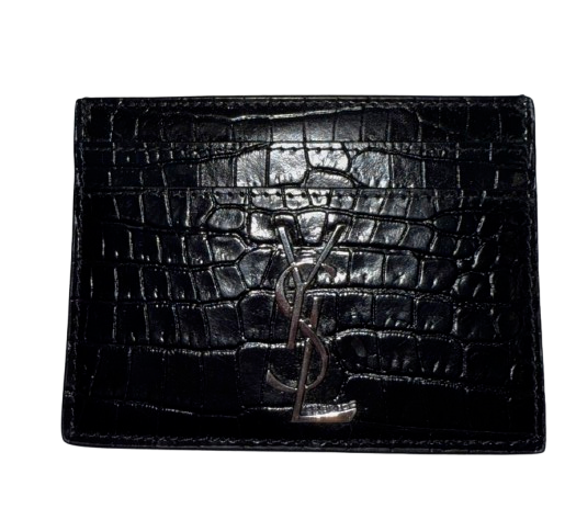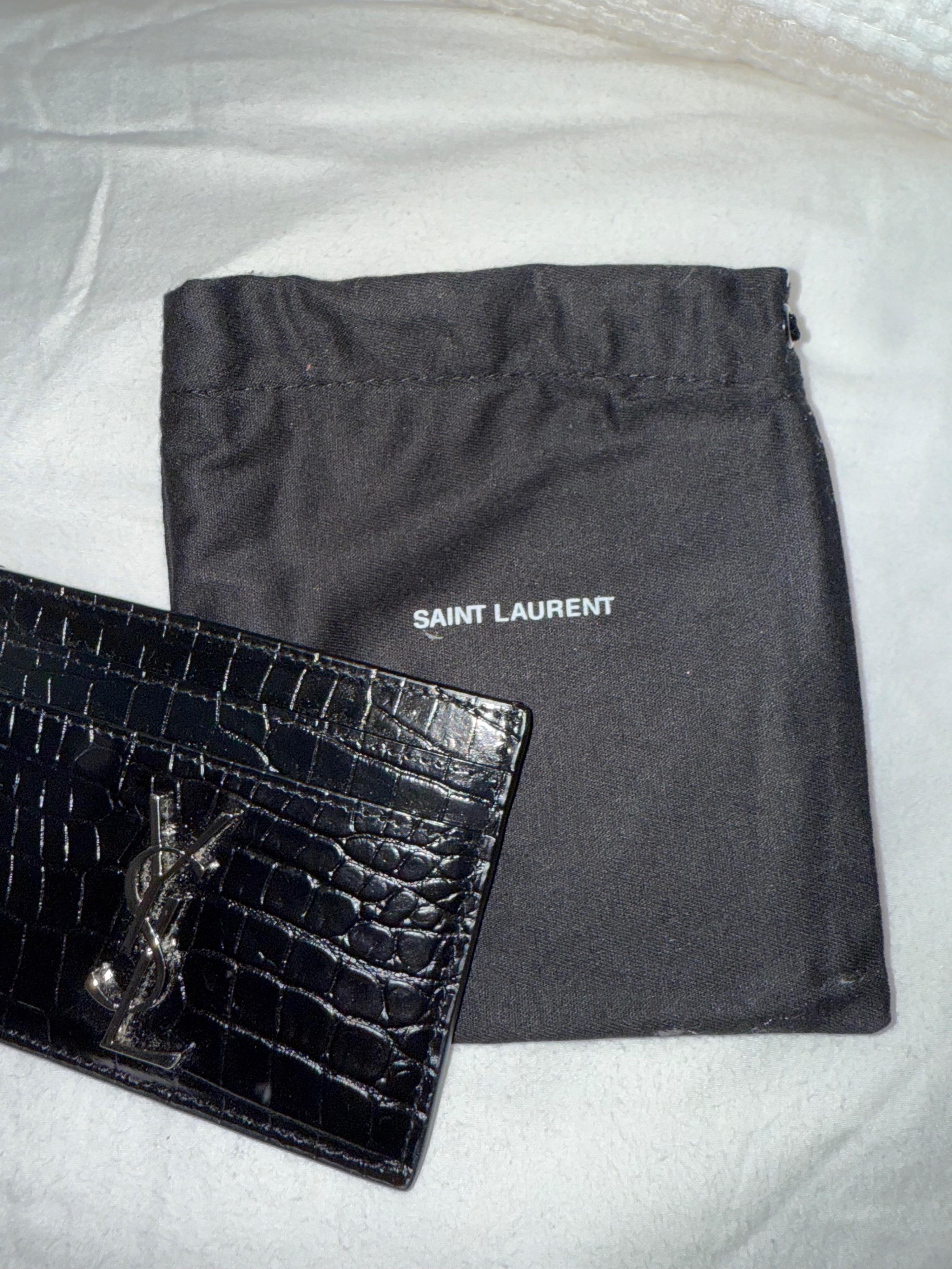 Saint laurent croc embossed Cassandra black leather card holder. Never used in great condition