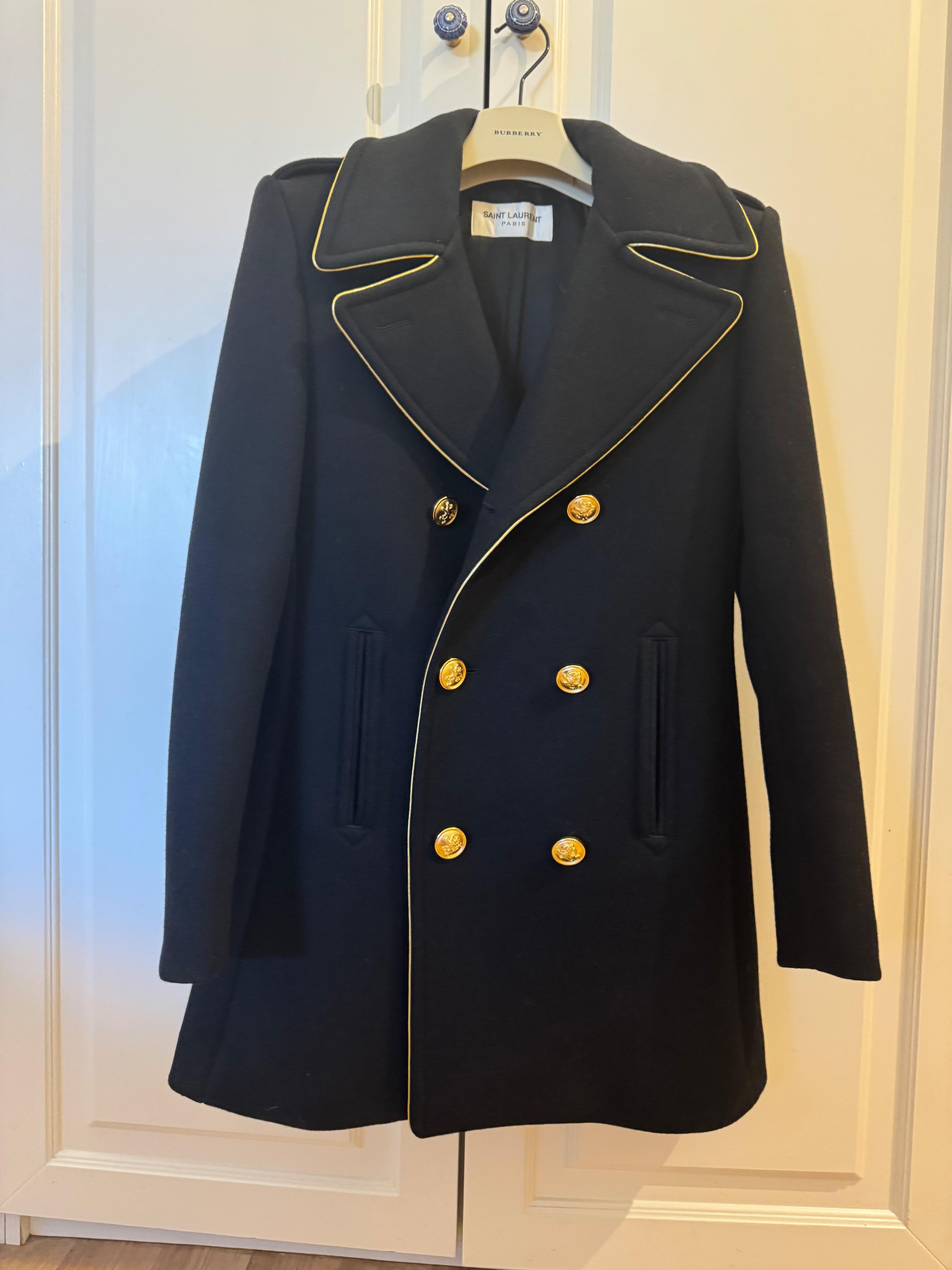 Saint Laurent wool coat. Only been worn couple of times. Comes with the spare buttons. Bought for £1,525 in London.