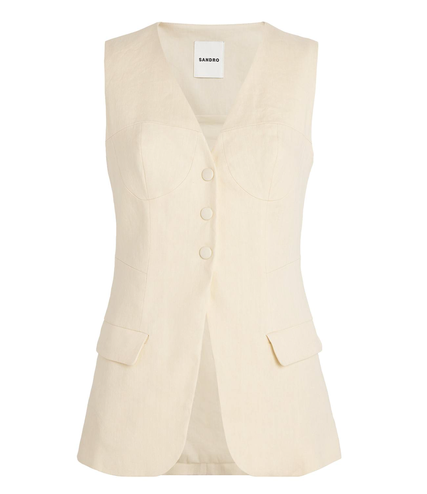 Sandro Linen Sleeveless Jacket