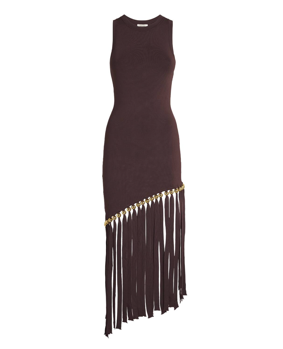 Sandro Sleeveless Fringed-Hem Knitted Midi Dress