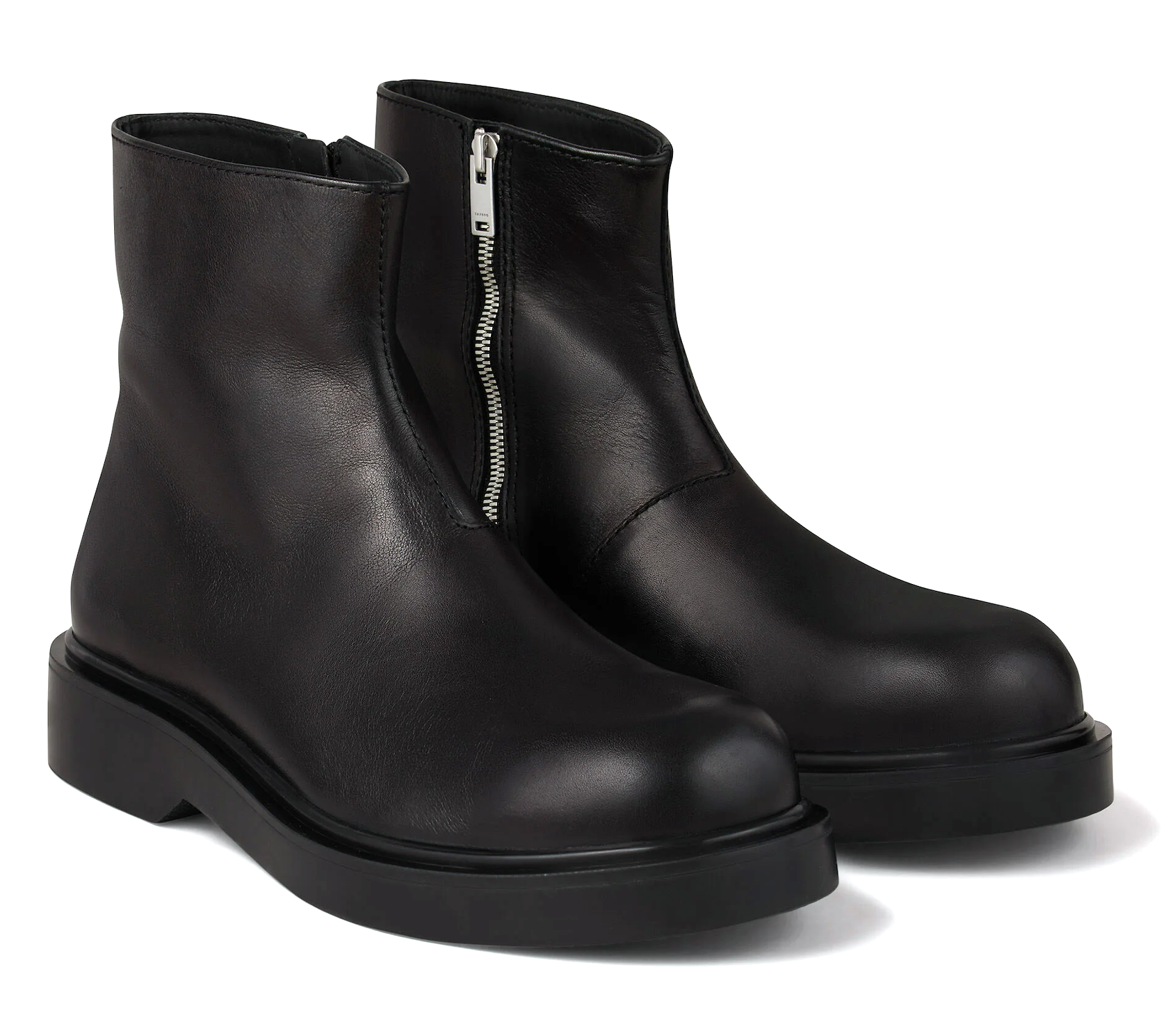 Leather ankle boots with a zip fastening featuring a thick round toe.
