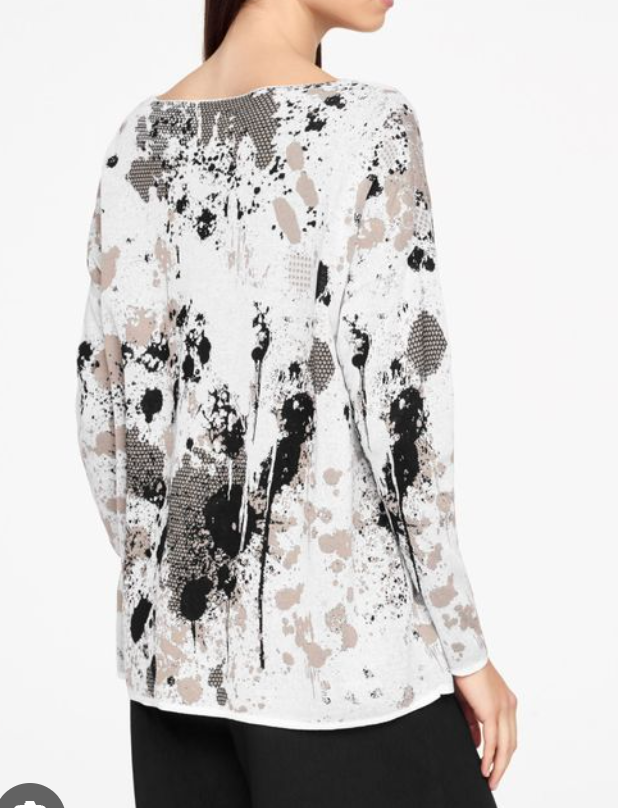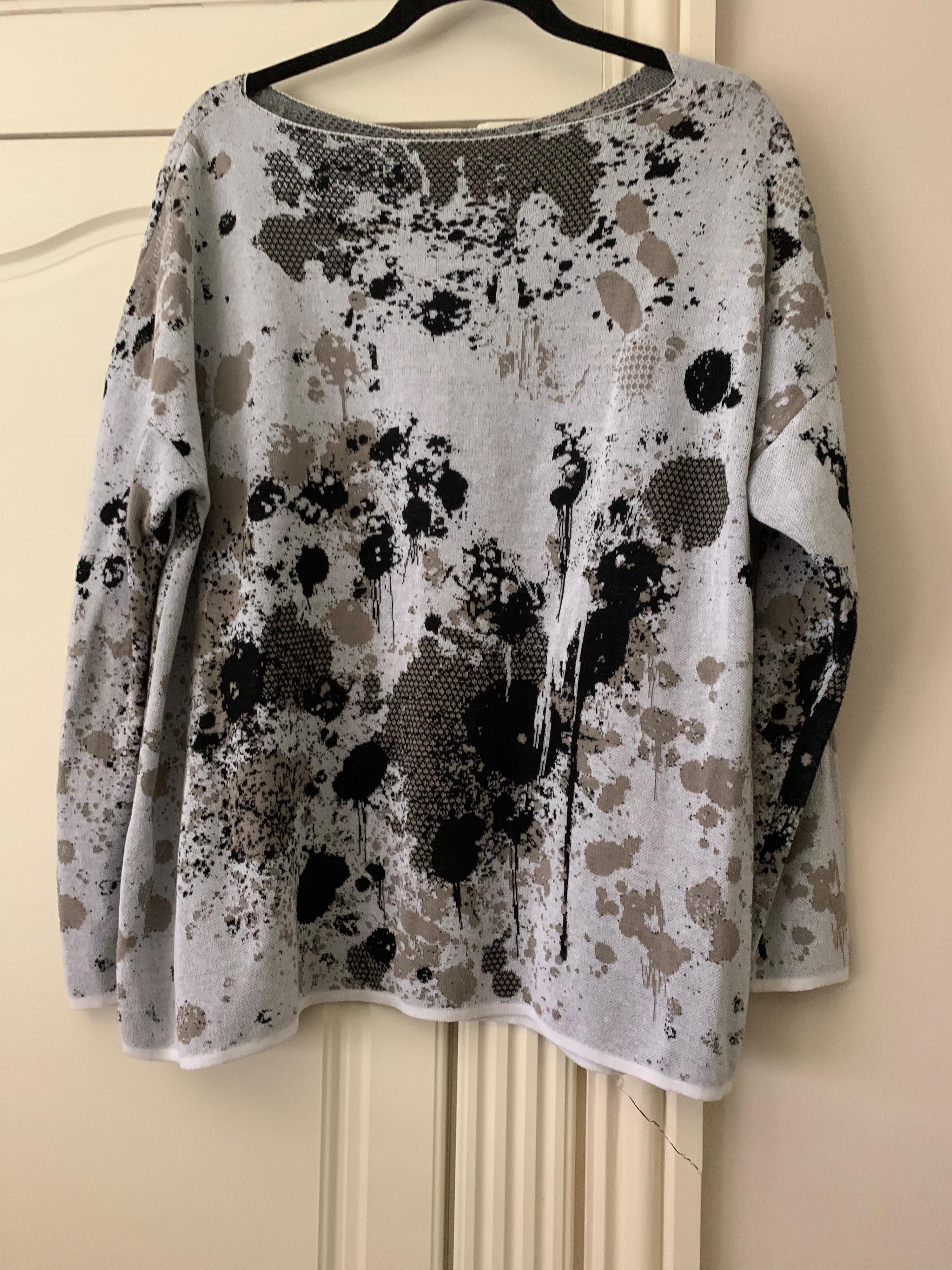 A mixed cotton tunic in white/beige/black abstract pattern long sleeve one size