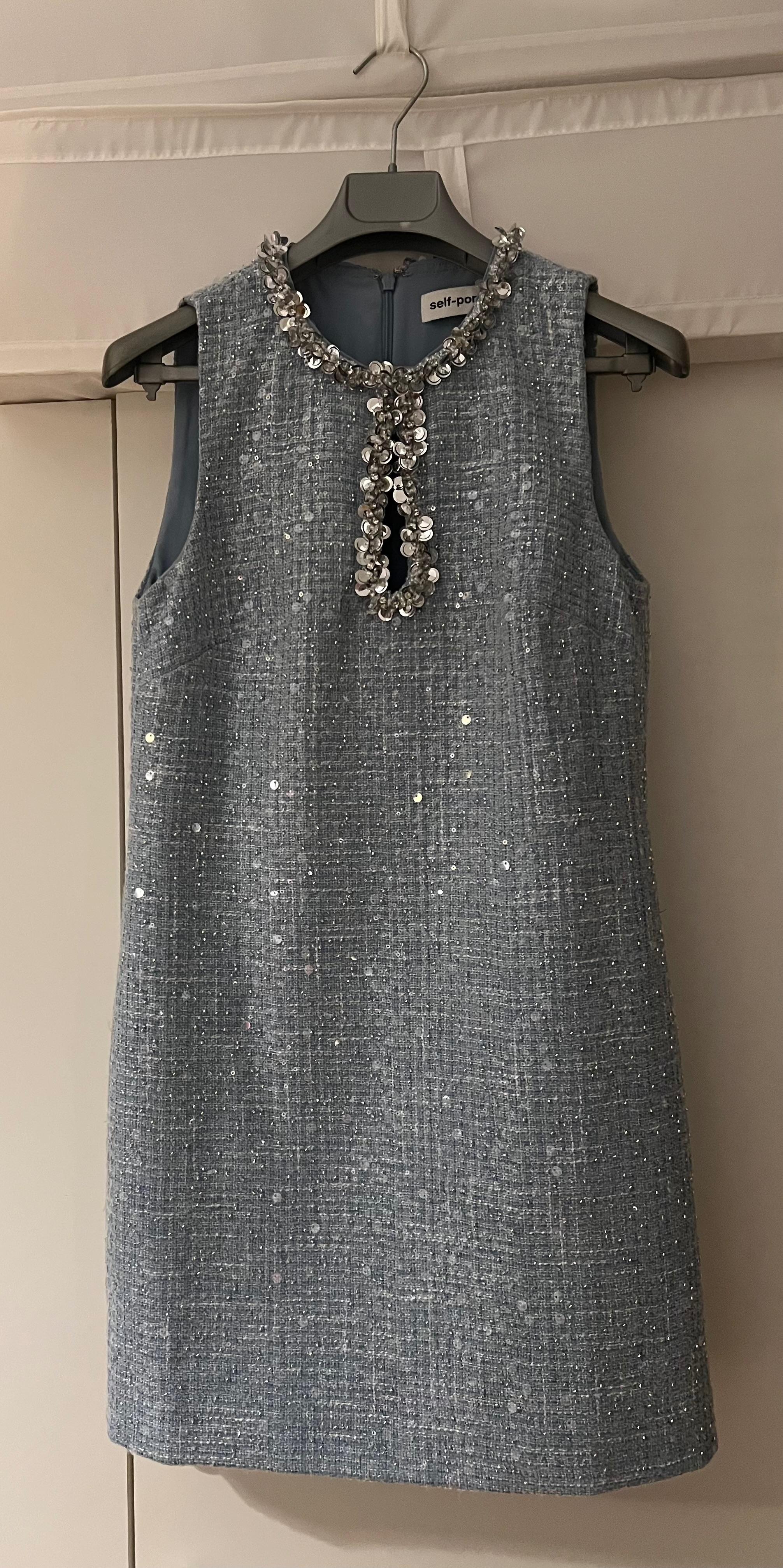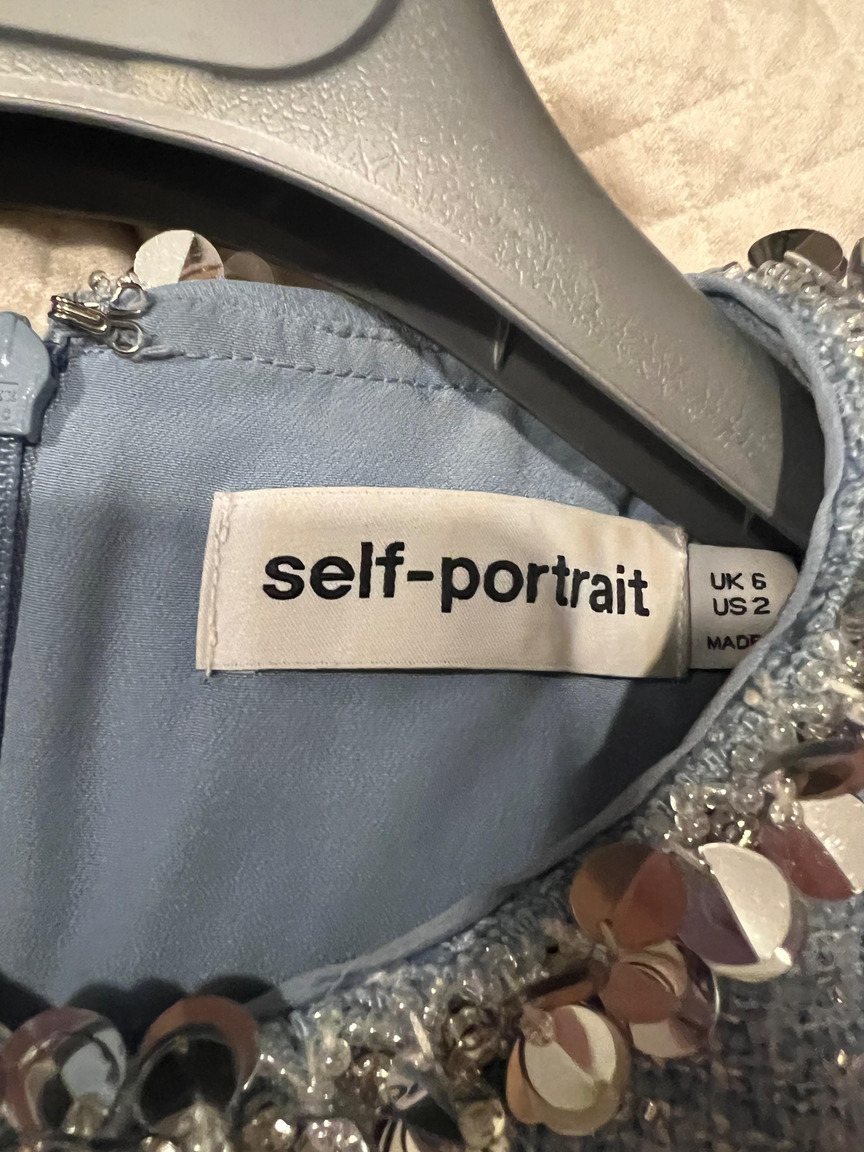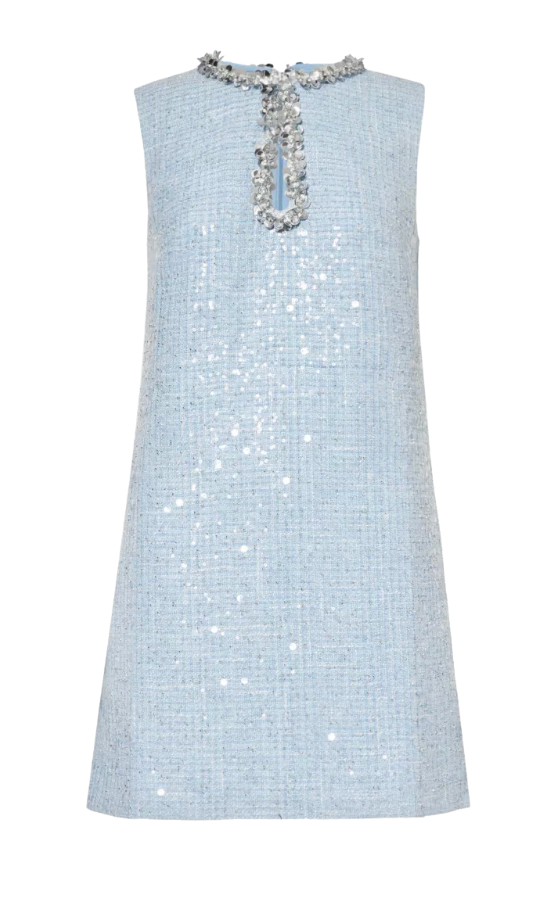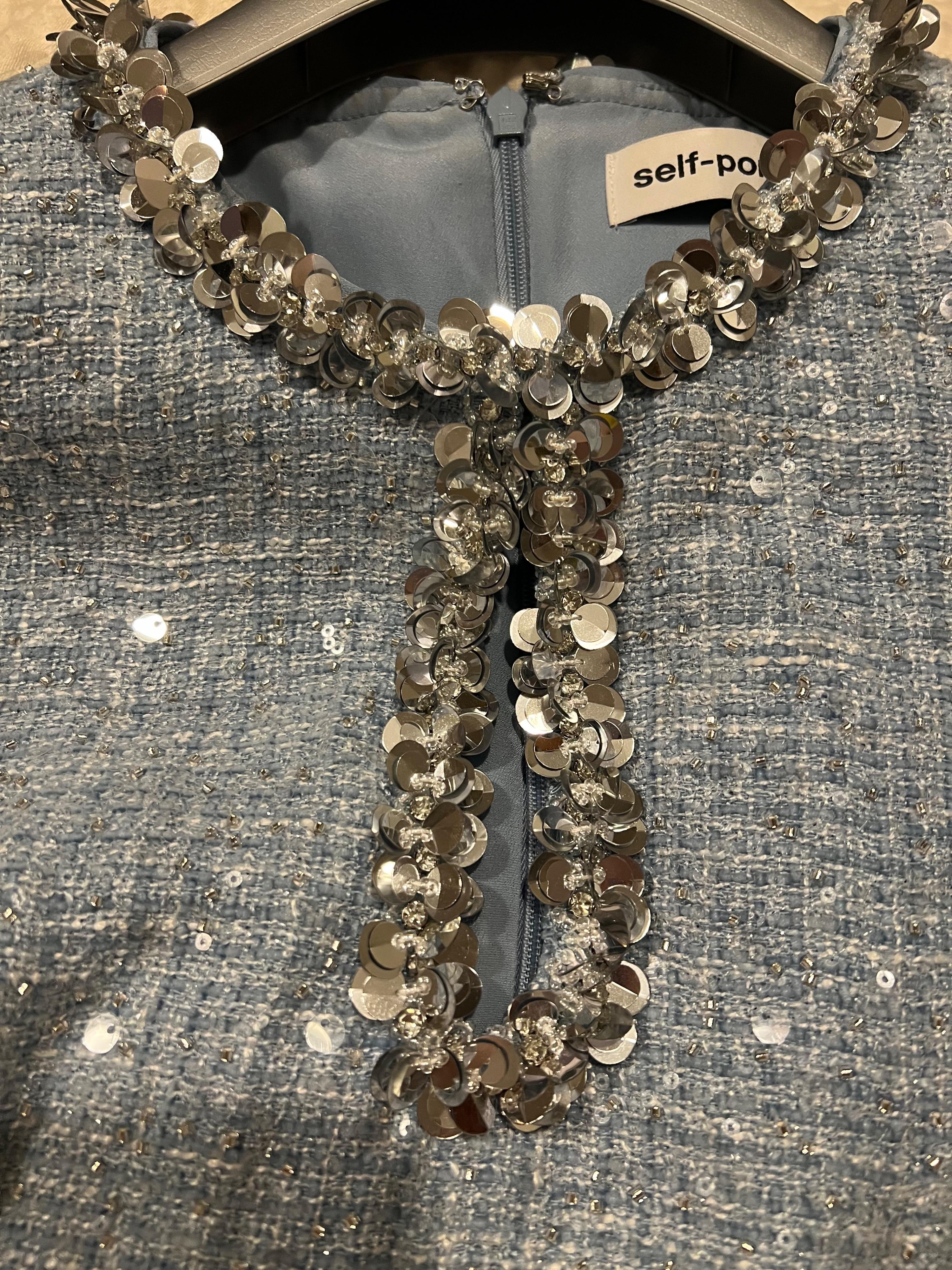 Self Portrait Baby Blue Woven Sequin Mini Dress
