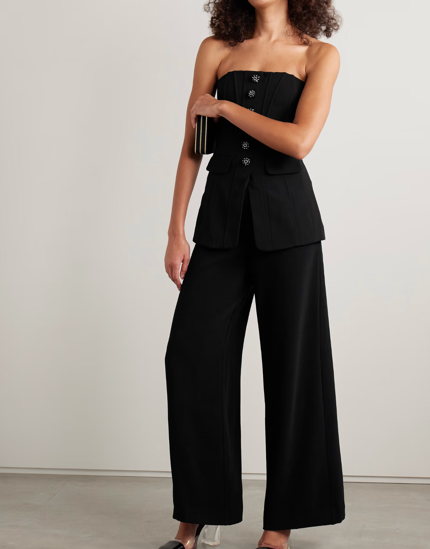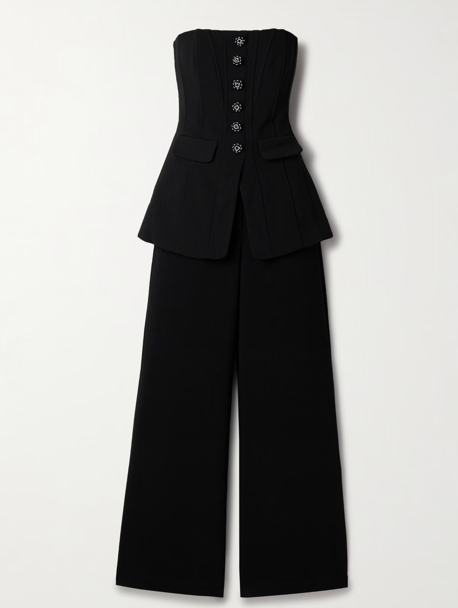 Self Portrait Convertible Strapless Crystal-Embellished Peplum Crepe Jumpsuit