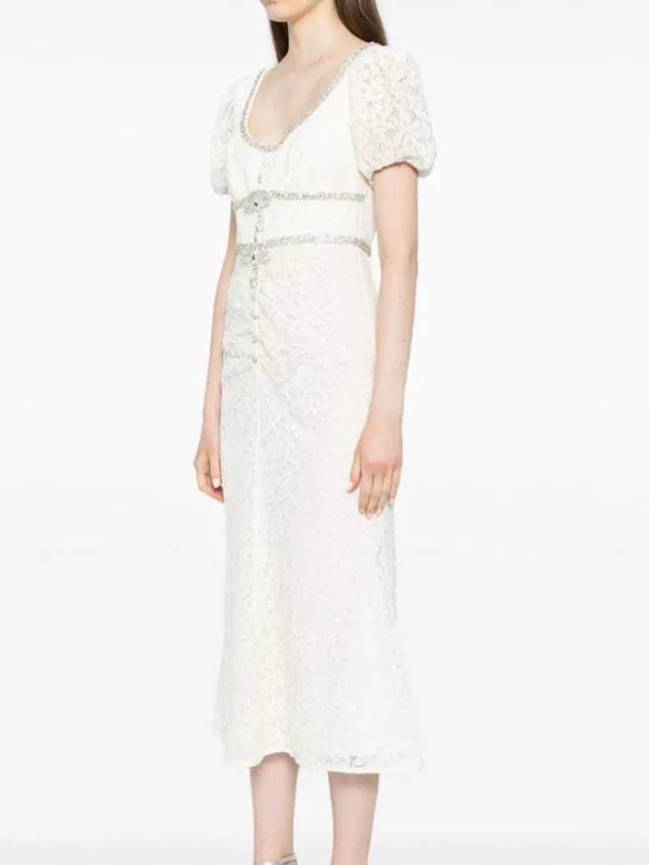 Self Portrait Diamanté Trim Lace Midi Dress