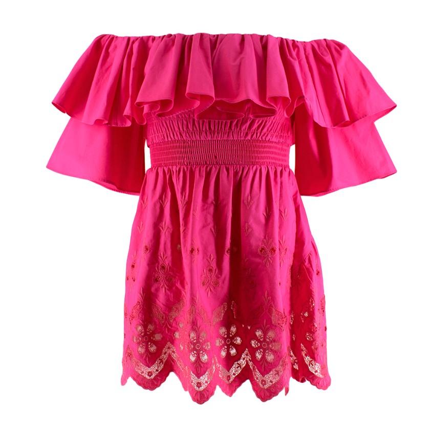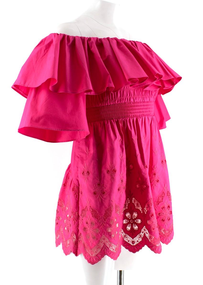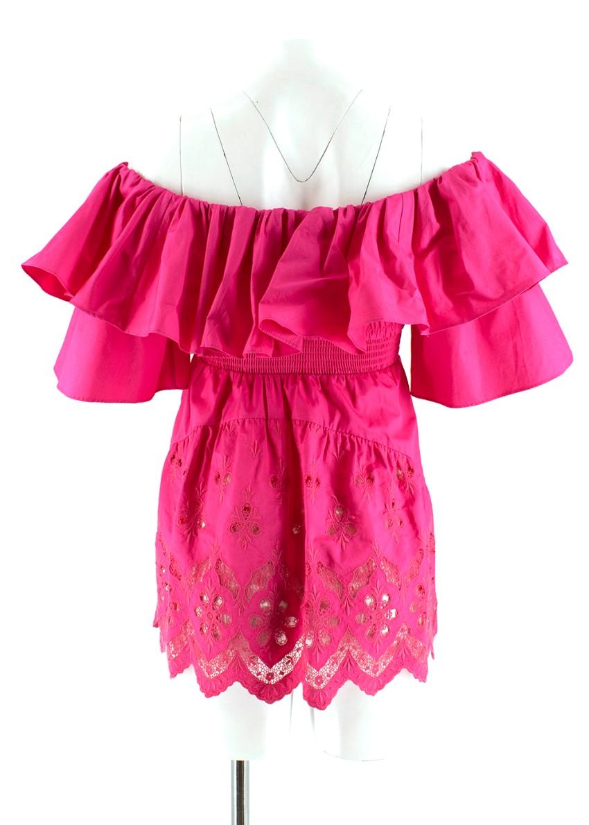 Self Portrait Fuchsia Embroidered Ruffle Off Shoulder Top