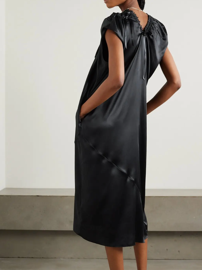 Simone Rocha Tie-Detailed Ruched Silk-Satin Midi Dress