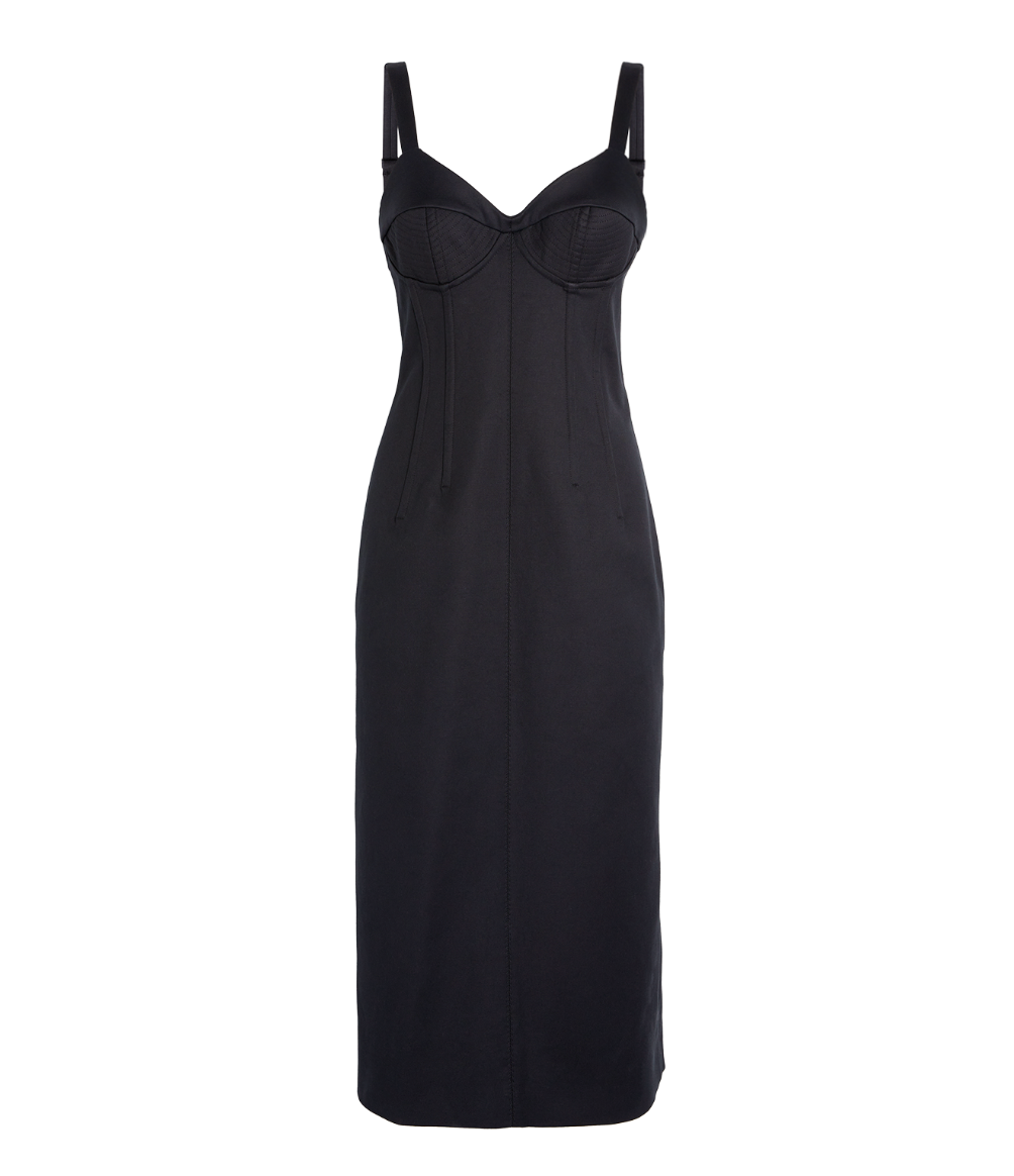 SPORTMAX. bodycon dress, twill, stretchy fabric, plain colour, no appliqués, deep neckline, sleeveless, internal boning, zip fastening, hand wash or dry clean, do not bleach, do not tumble dry. 98% Cotton, 2% Elastane. Colour: black