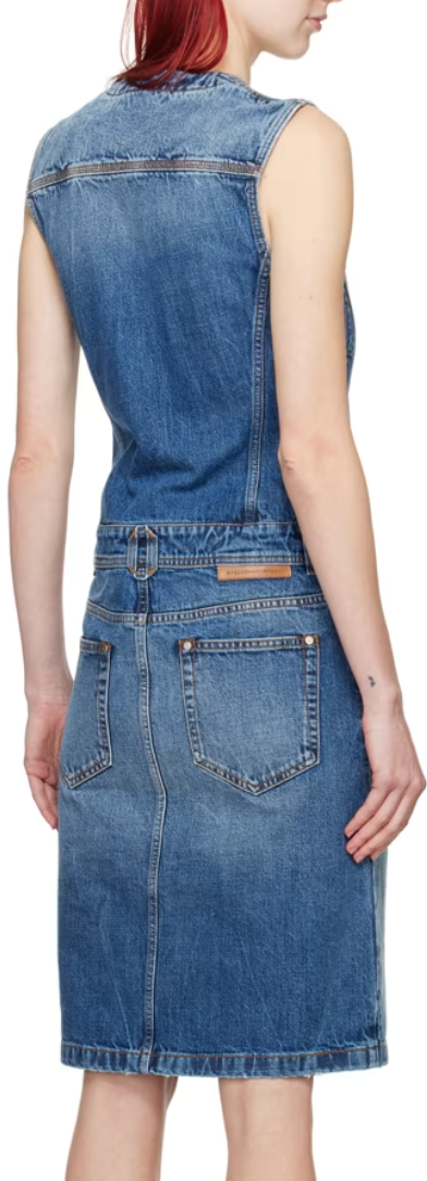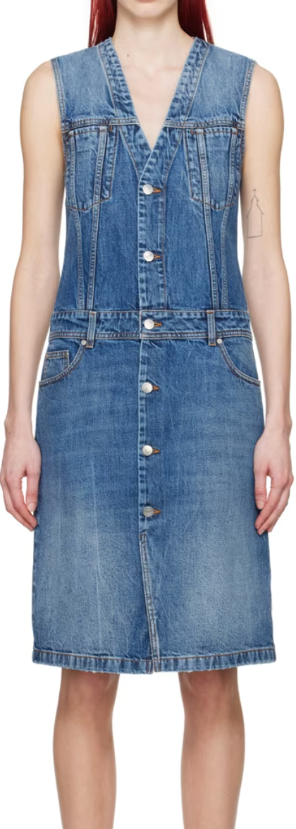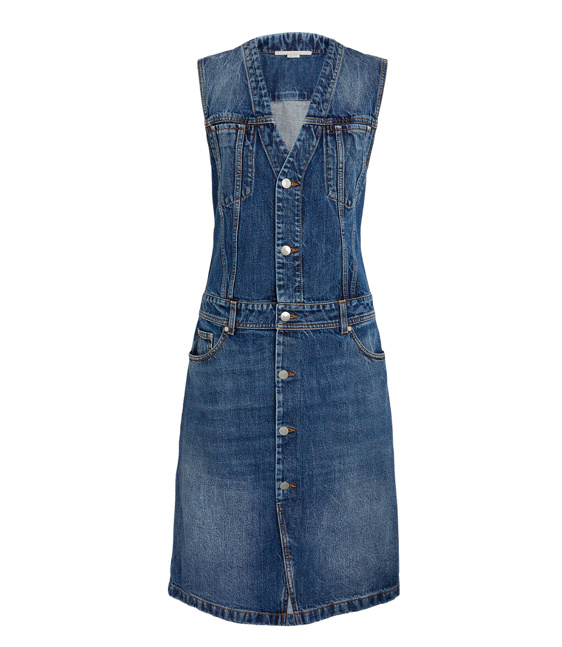 Non-stretch denim dress. Fading and subtle distressing throughout.
