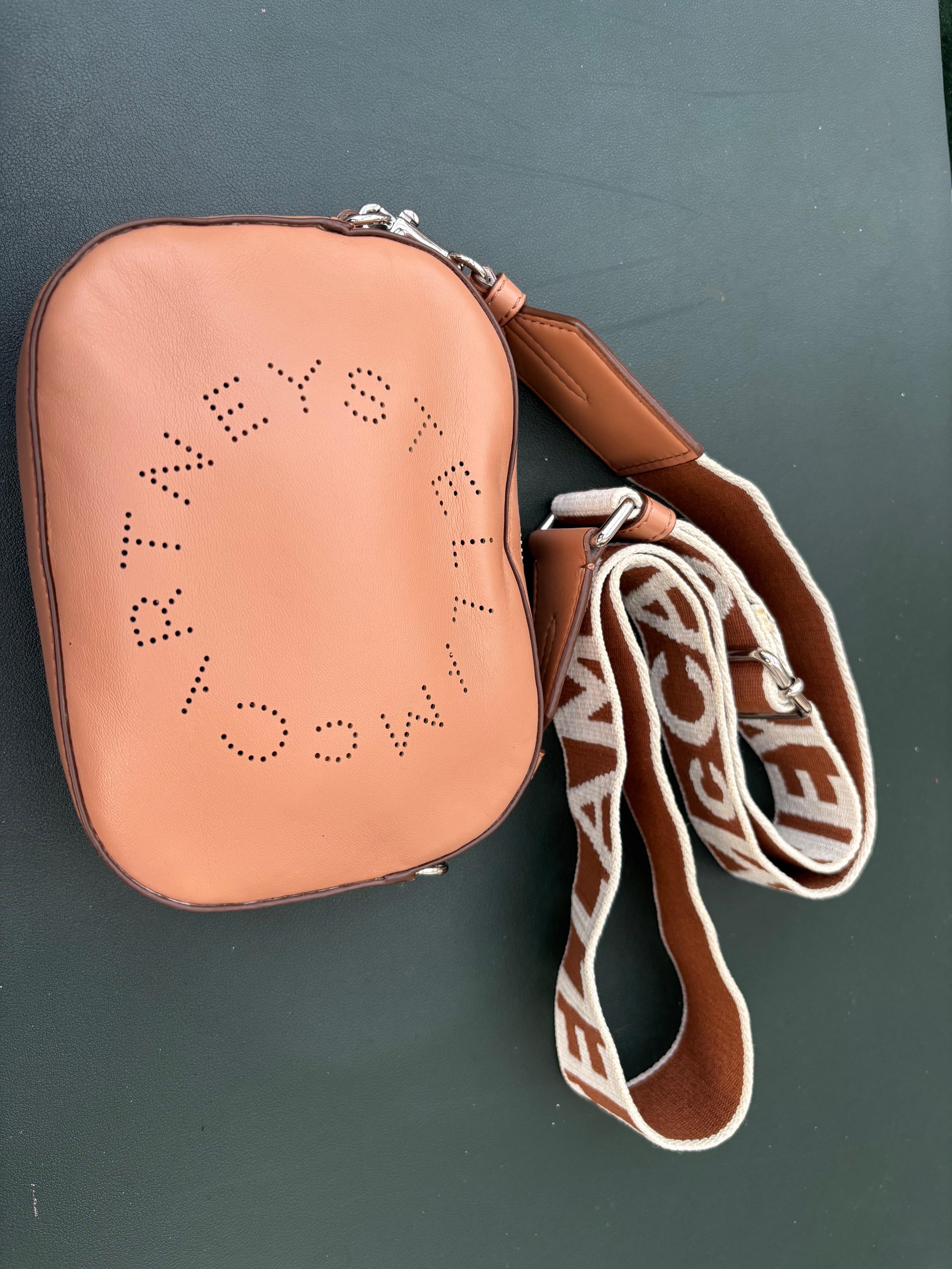 Stella McCartney Logo Perforated Mini Crossbody Camera Bag- Tan. New/ Never worn.