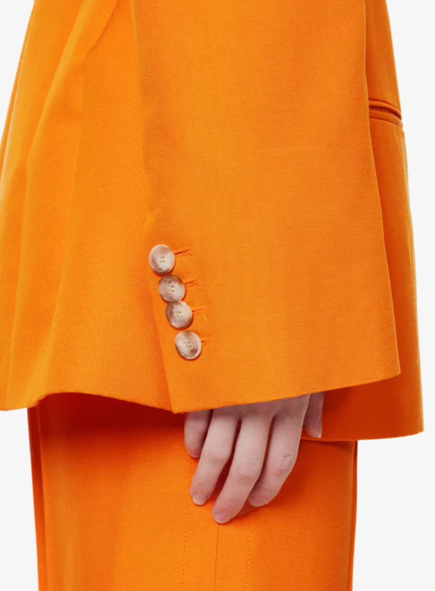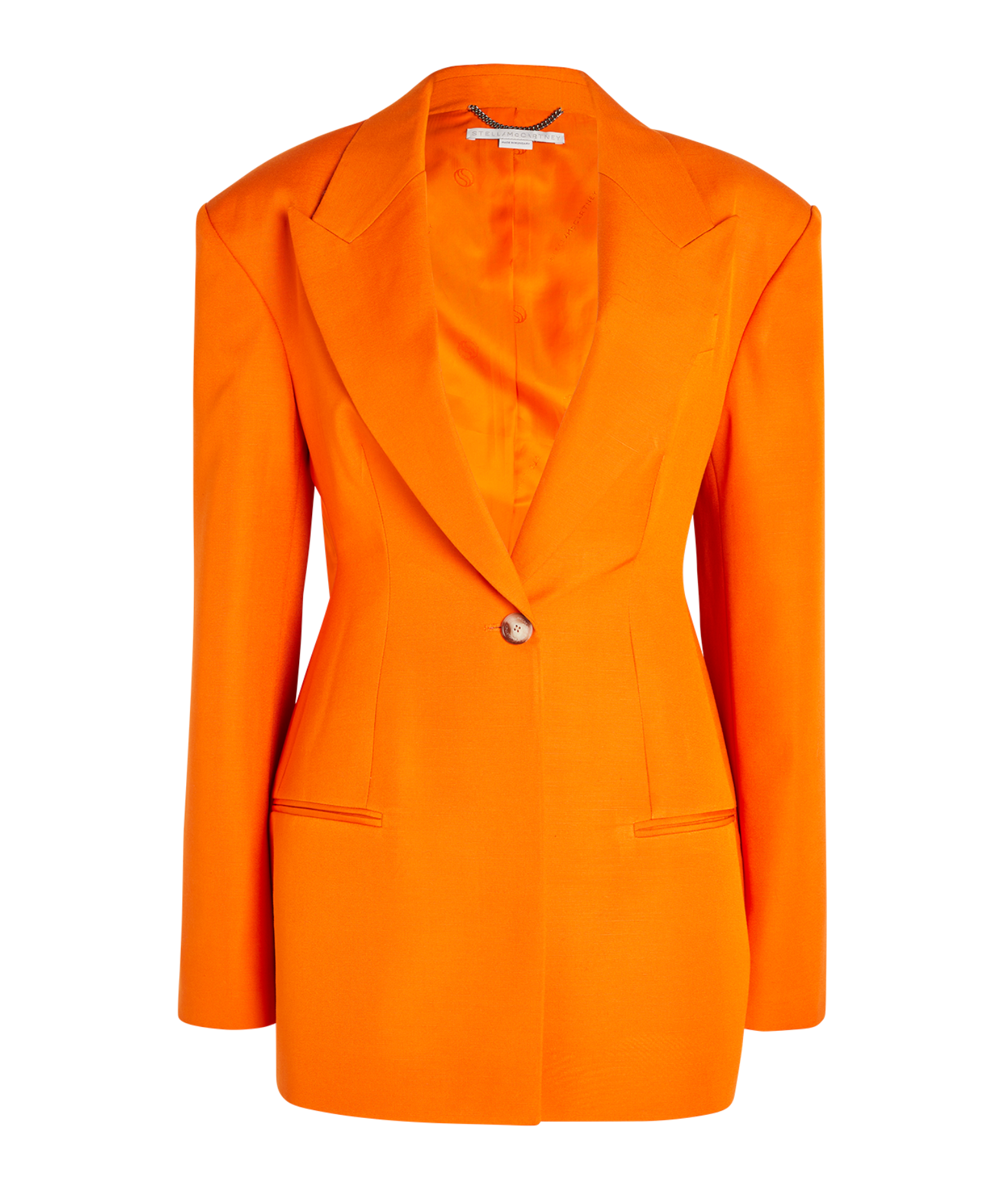 Among the 1970s-inspired creations that reigned in Stella McCartney’s SS24 collection, the British designer made sure to reaffirm her tailoring technicalities (the creative trained on Savile Row, after all) with sharp separates like this blazer. Shaped with a neatly nipped-in waist, this single-breasted style is topped with pincer-sharp peak lapels and sculpted with powerful padded shoulders to enhance your frame, before it’s stitched with parallel pockets at the waist.