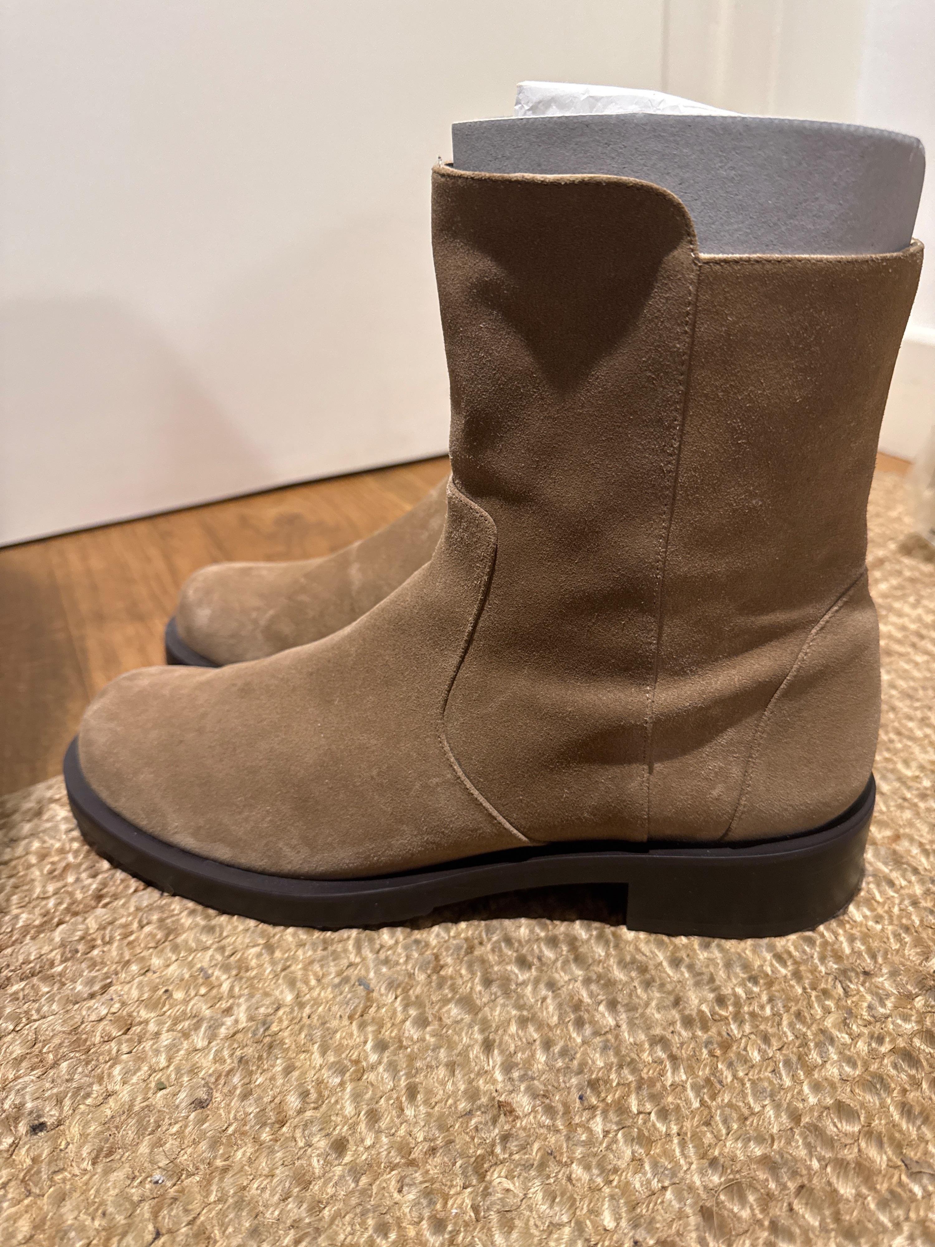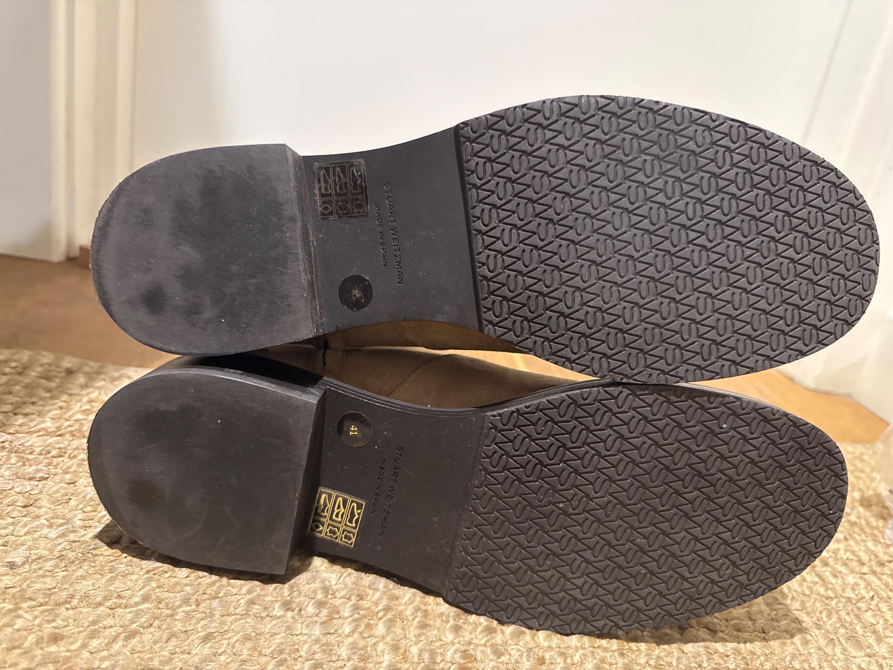 Stuart Weitzman suede boots. Worn three times. Rubbed on shin on left side. Stuart Weitzman said it’s a sizing issue.