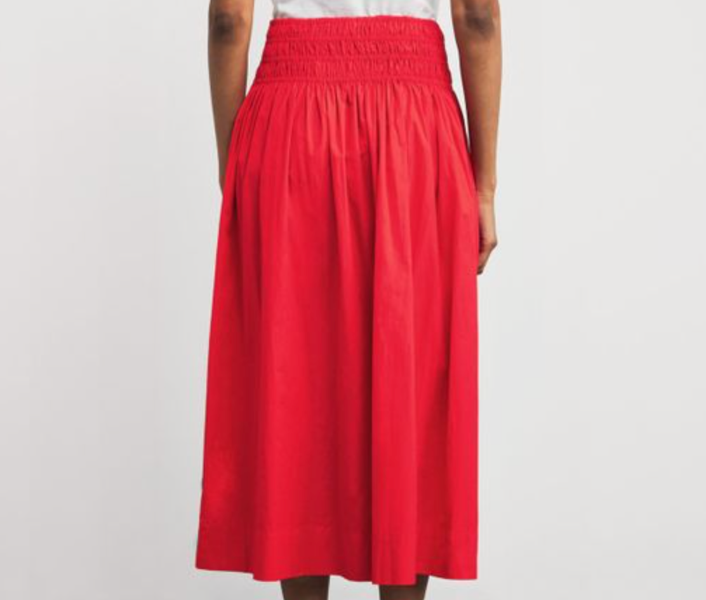 Designed for lives in motion, the Viola skirt from the great. flows with generous structure and a smocked waistband that hugs in comfort. An ankle‑length silhouette in crisp cotton poplin makes it a closet constant, ready to transform with every wear.