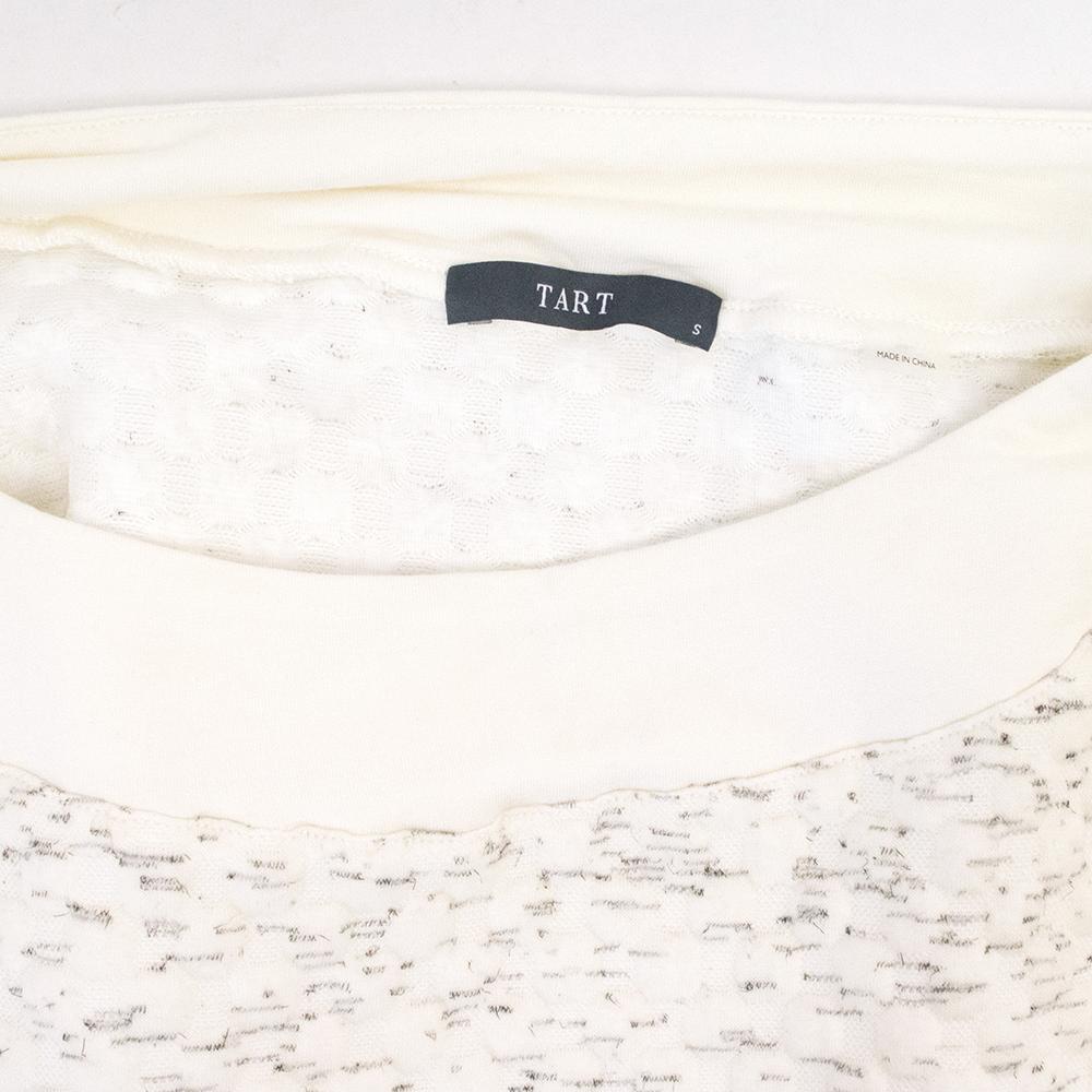 Tart jumper in light cream colour with texture detail, and jeepers on both side.