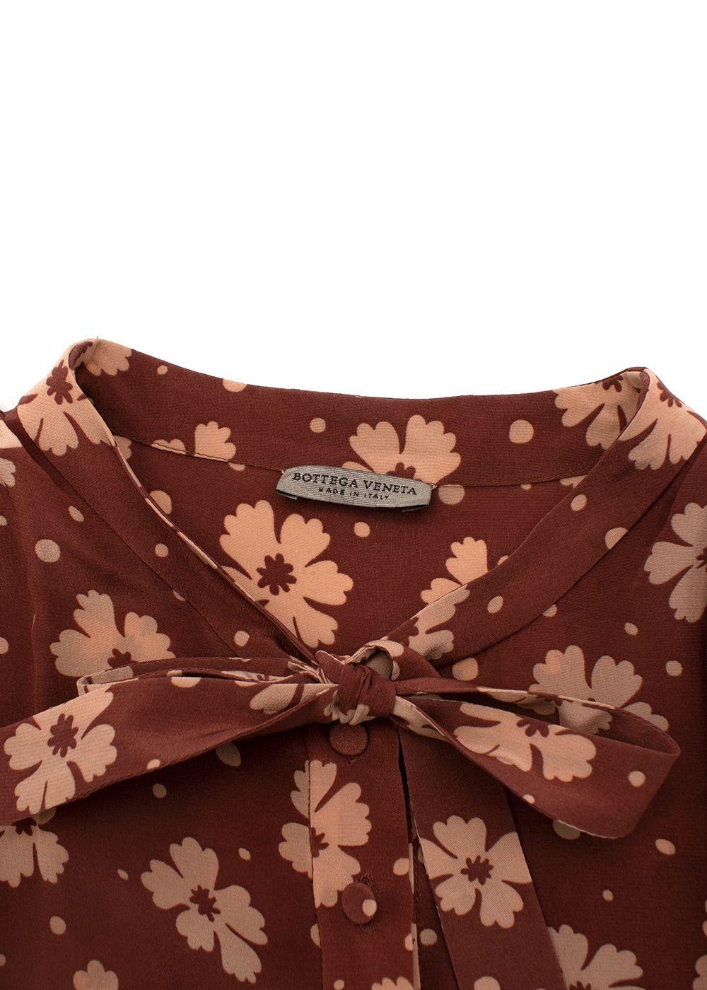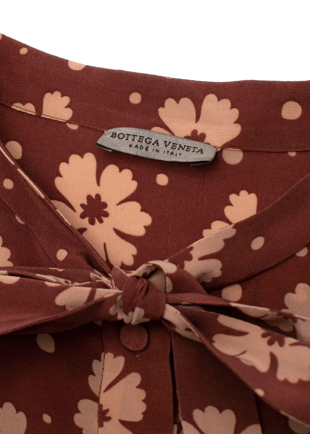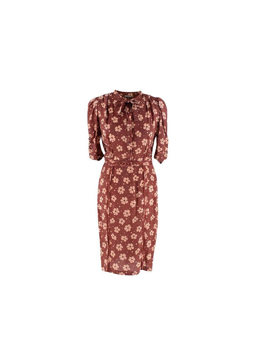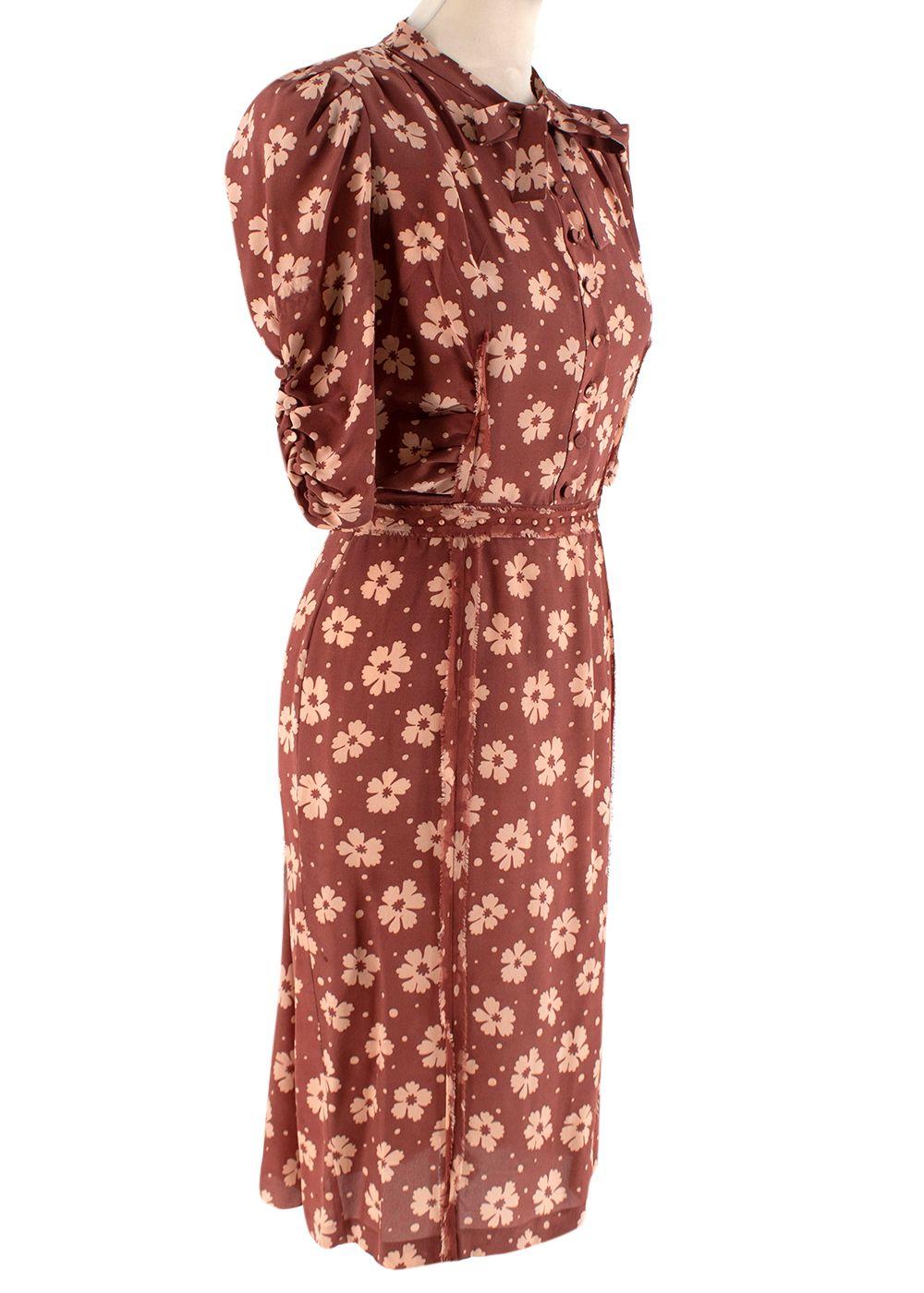 Bottega Veneta Terracotta Silk Crepe de Chine Floral Tea Dress