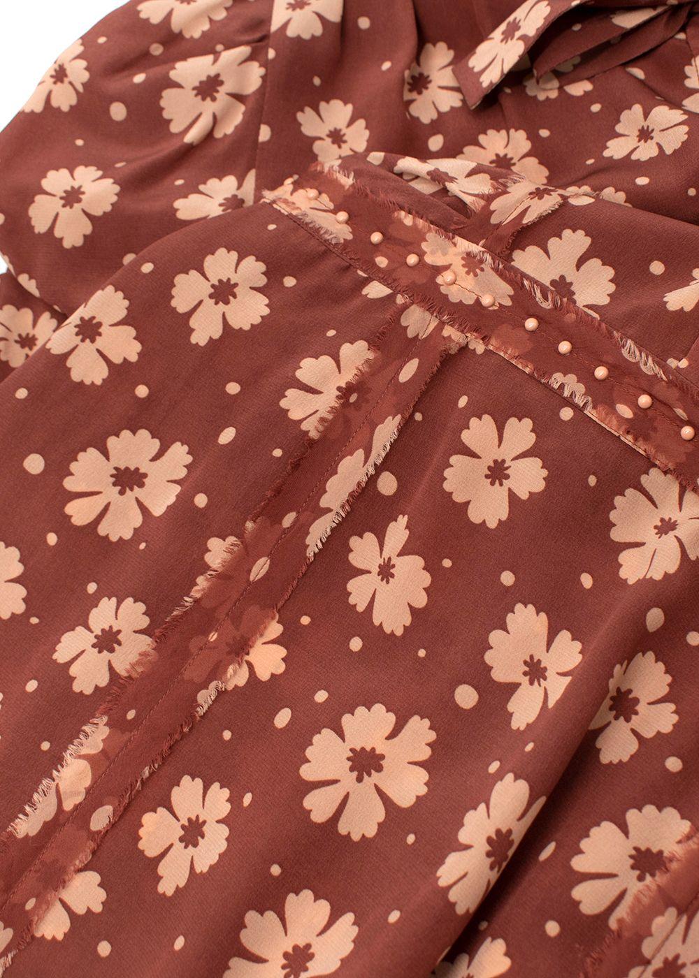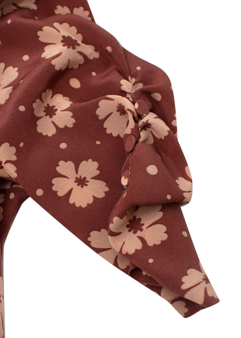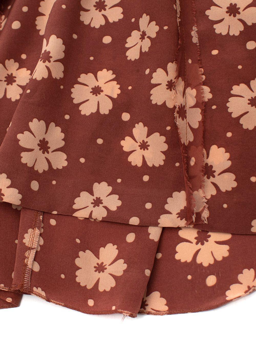 Bottega Veneta Terracotta Silk Crepe de Chine Floral Tea Dress