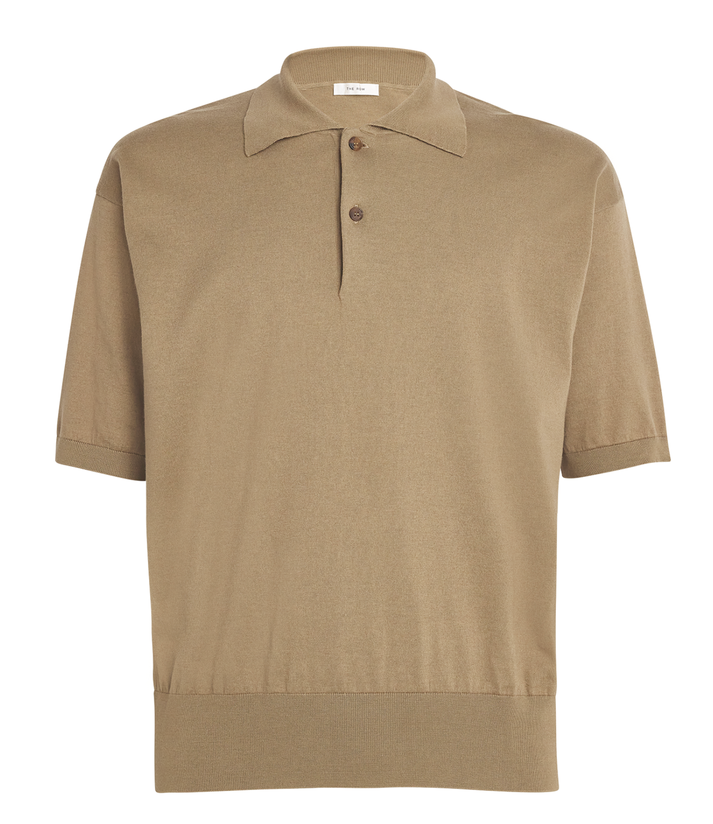 Knit cotton- and cashmere-blend polo.· Rib knit spread collar, hem, and cuffs· Two-button placket.
