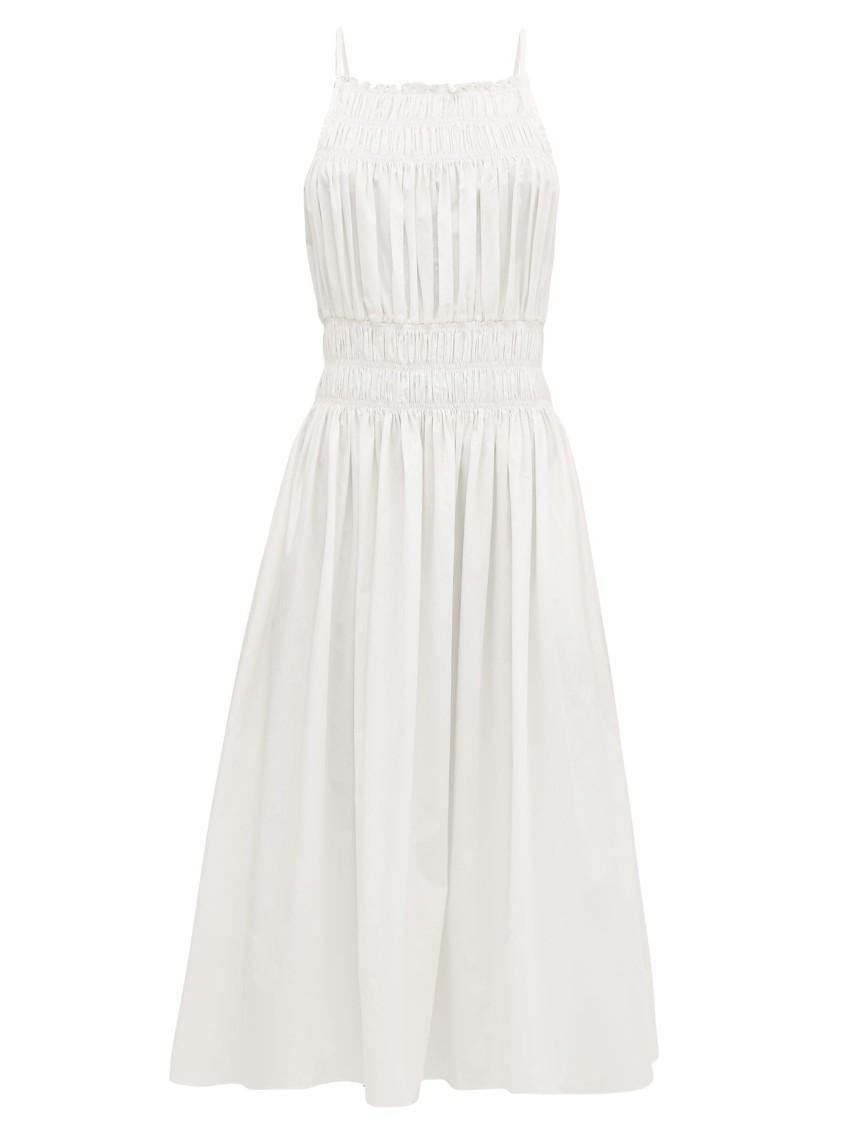 Three Graces London Cream Ruched Cotton-poplin Midi Dress