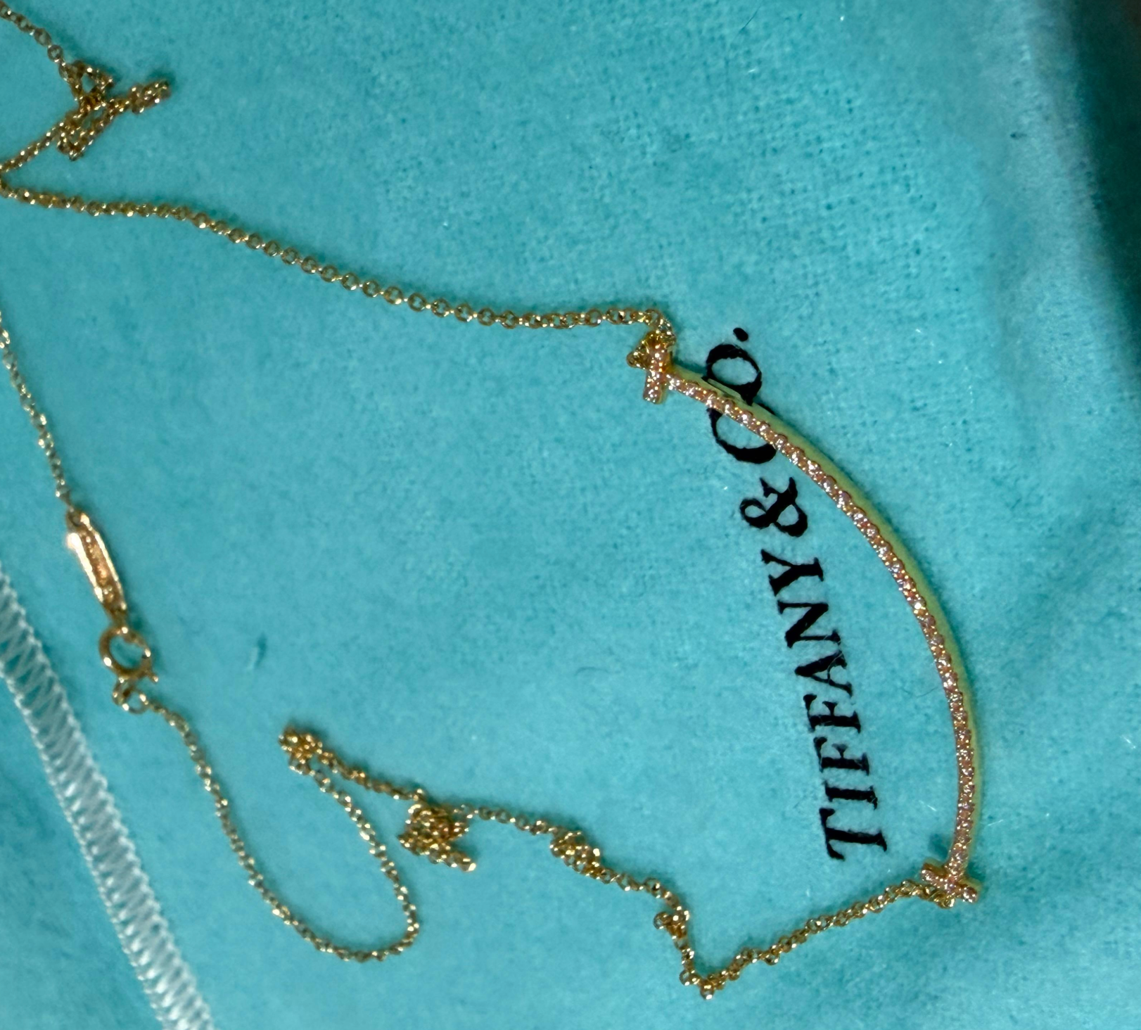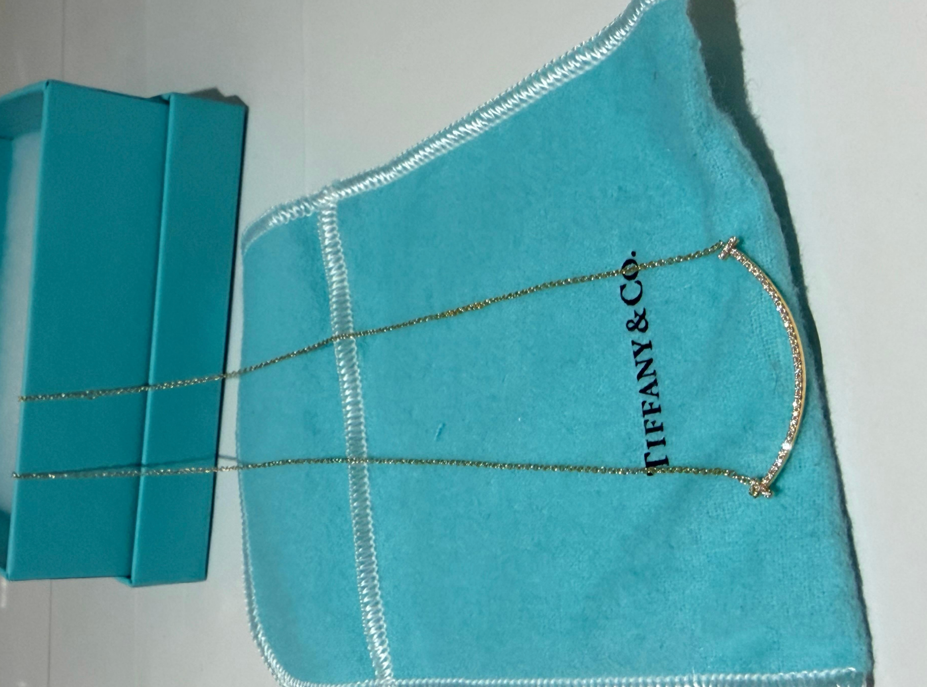 Tiffany & co T is an expression of love’s endless potential. Diamonds trace the elegant curve of this delicate pendant. Layer this diamond pendant with other Tiffany pendants of varying sizes and lengths for a unique look.