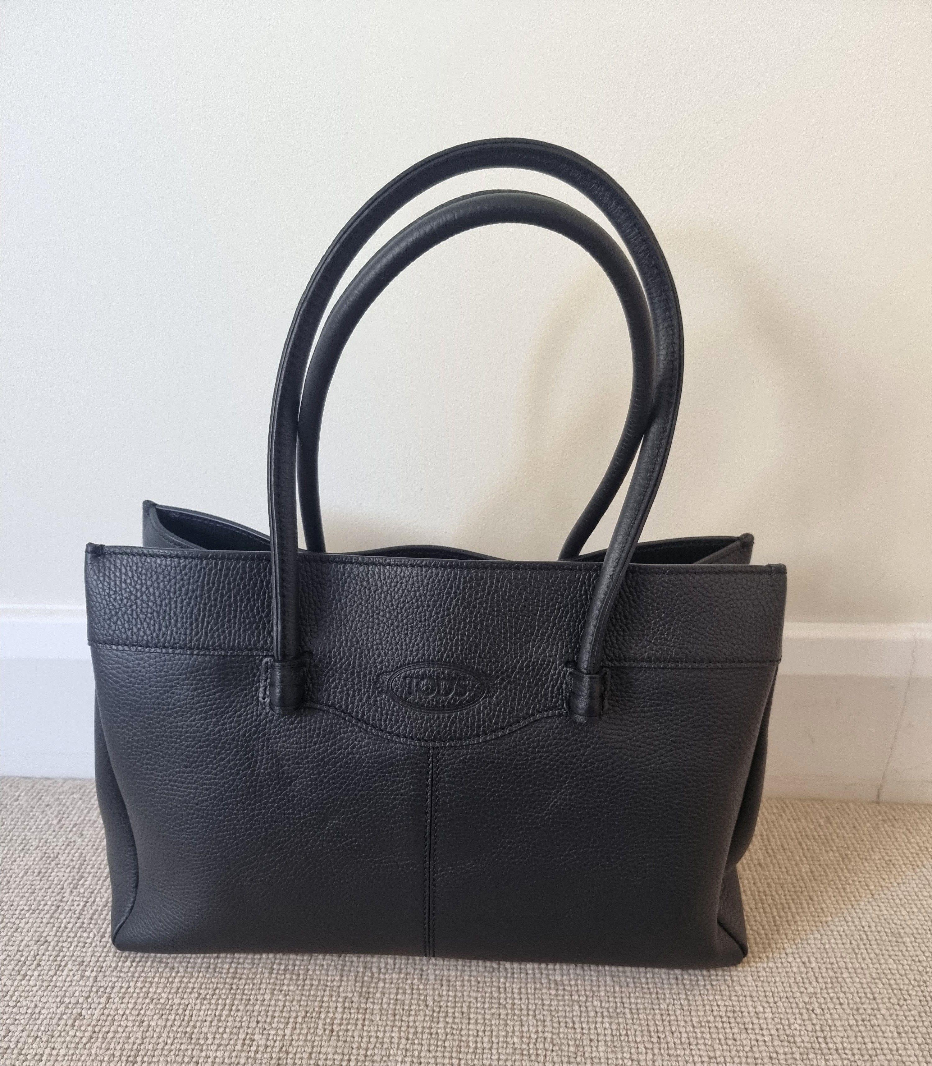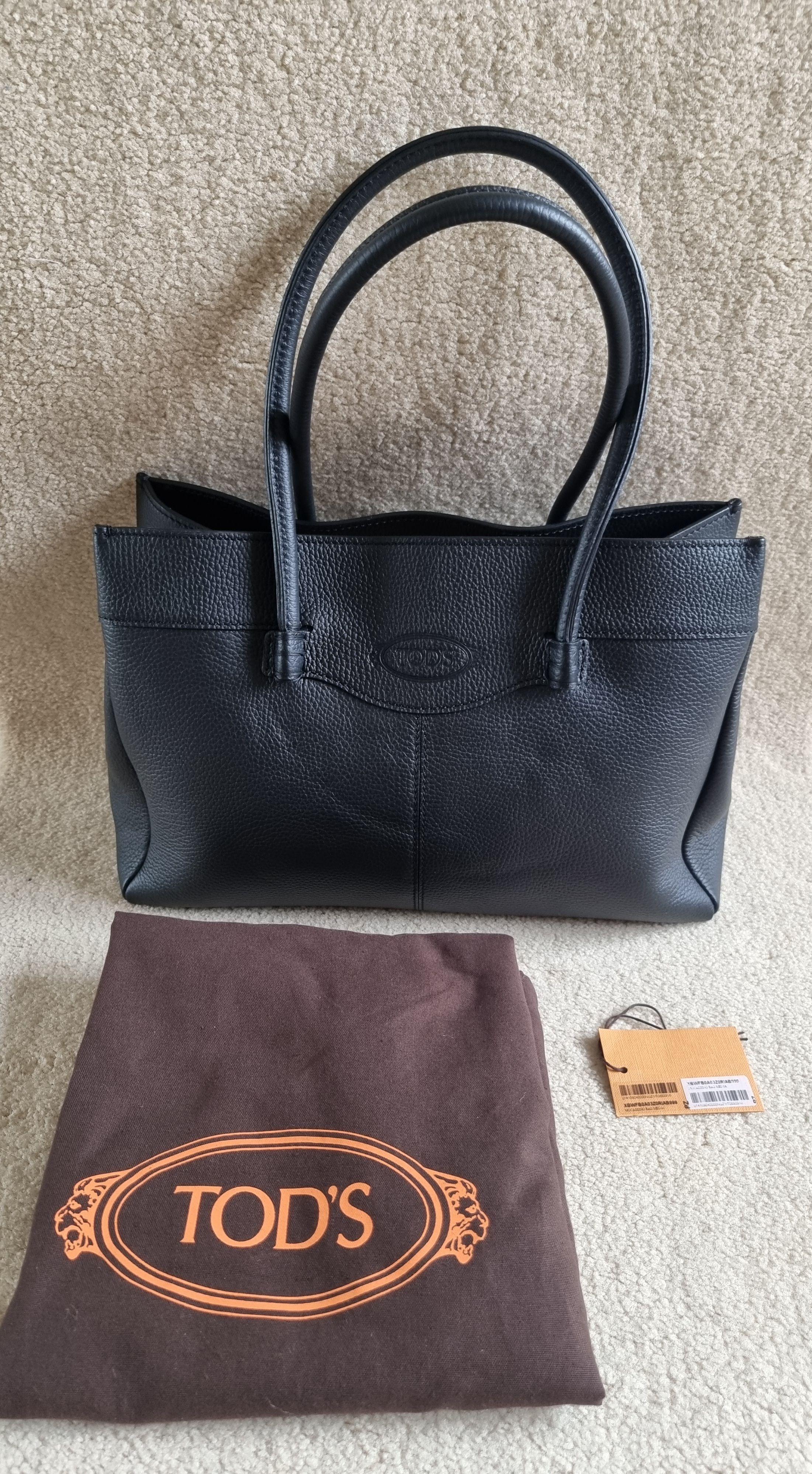 Tod's Black Pebbled Calf Mocassino Bag