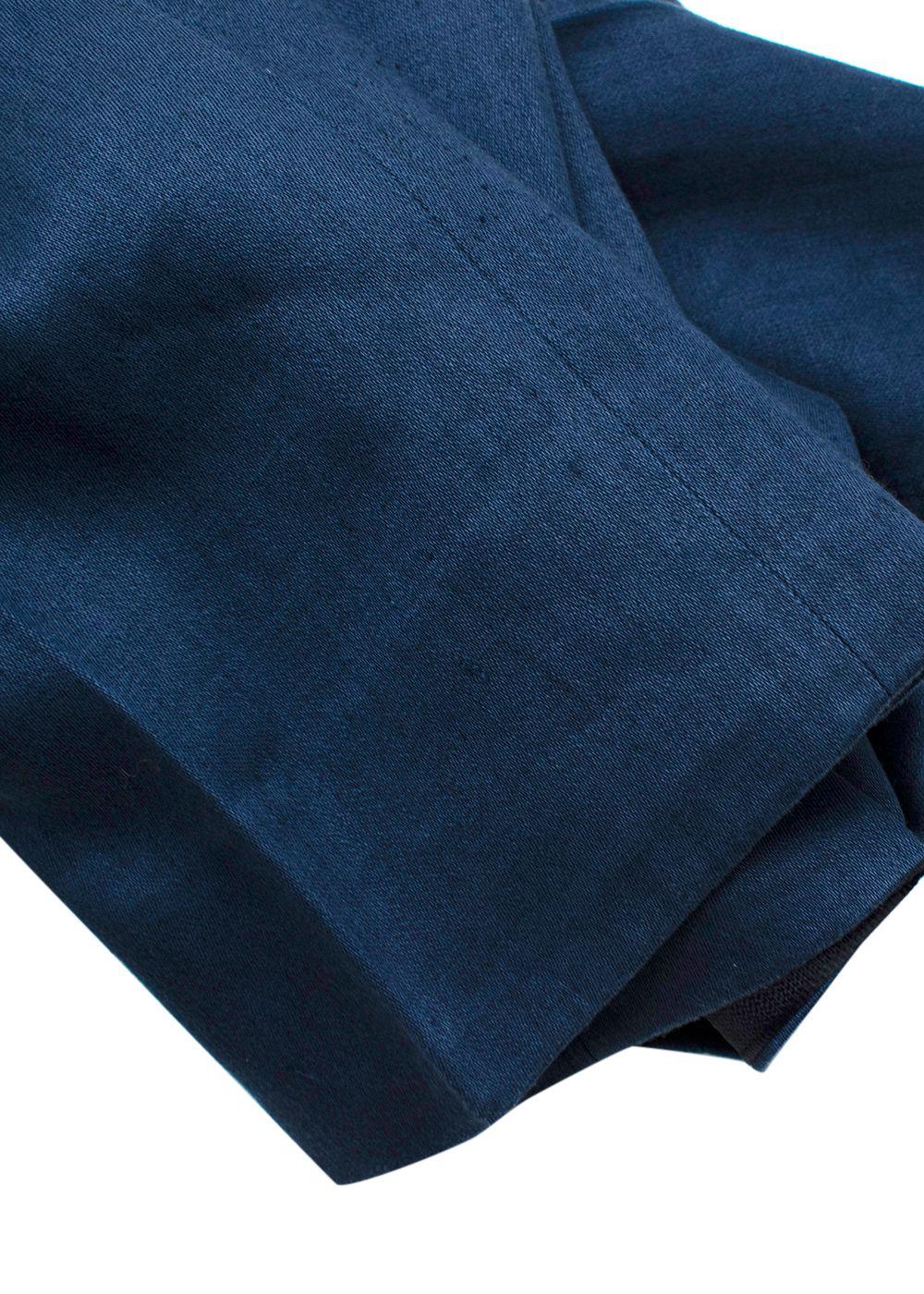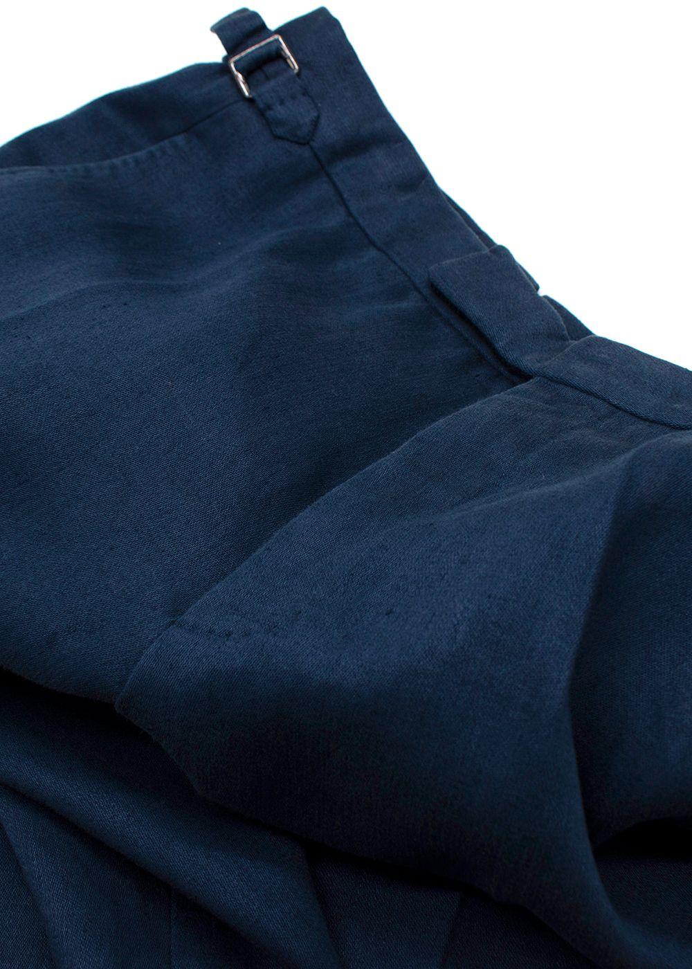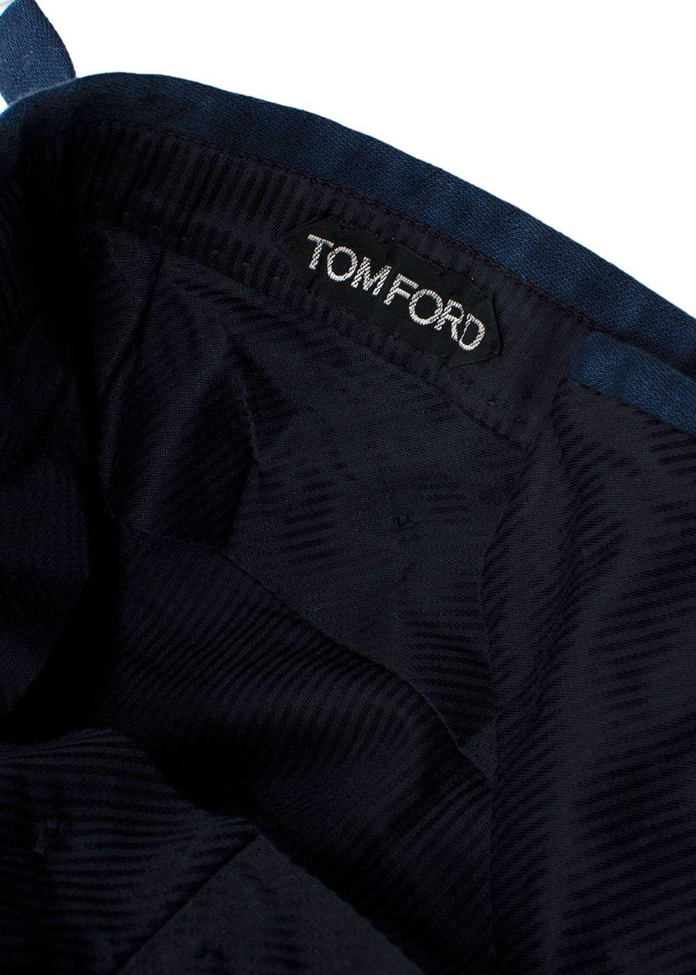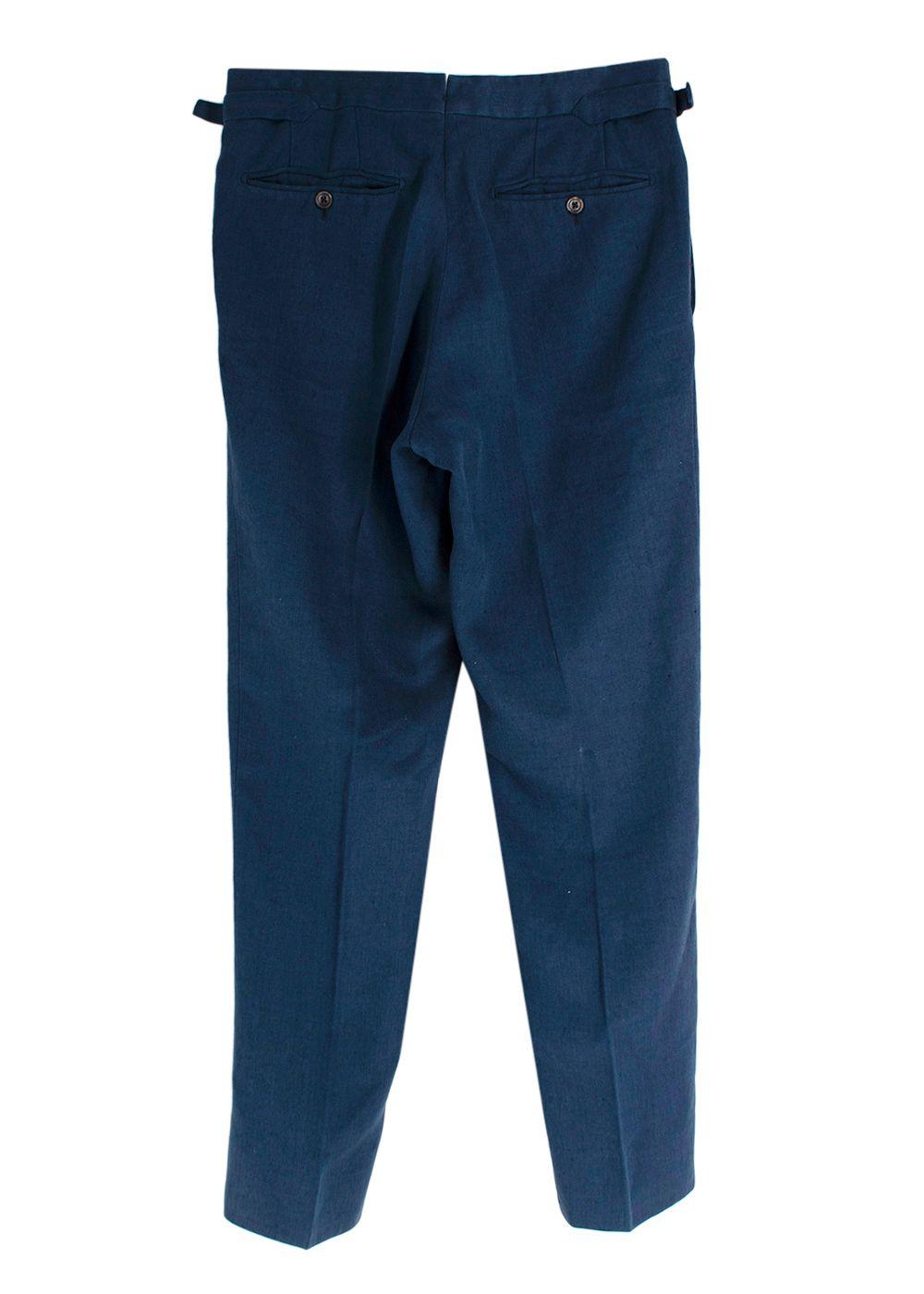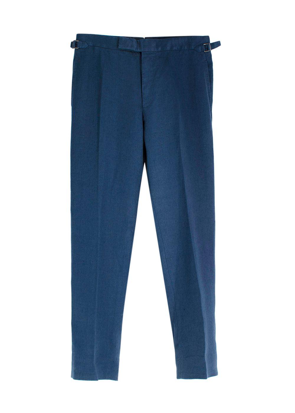Elevate your wardrobe with these nearly new Tom Ford linen trousers, crafted in Italy with signature quality and sleek tailoring. Designed in a versatile navy hue, the pants feature side adjuster buckles for a refined, custom fit and a flat-front silhouette that pairs perfectly with both casual and dress shirts. Lightly worn and in excellent condition, these trousers are ideal for warm-weather events, tailored looks, and timeless styling.