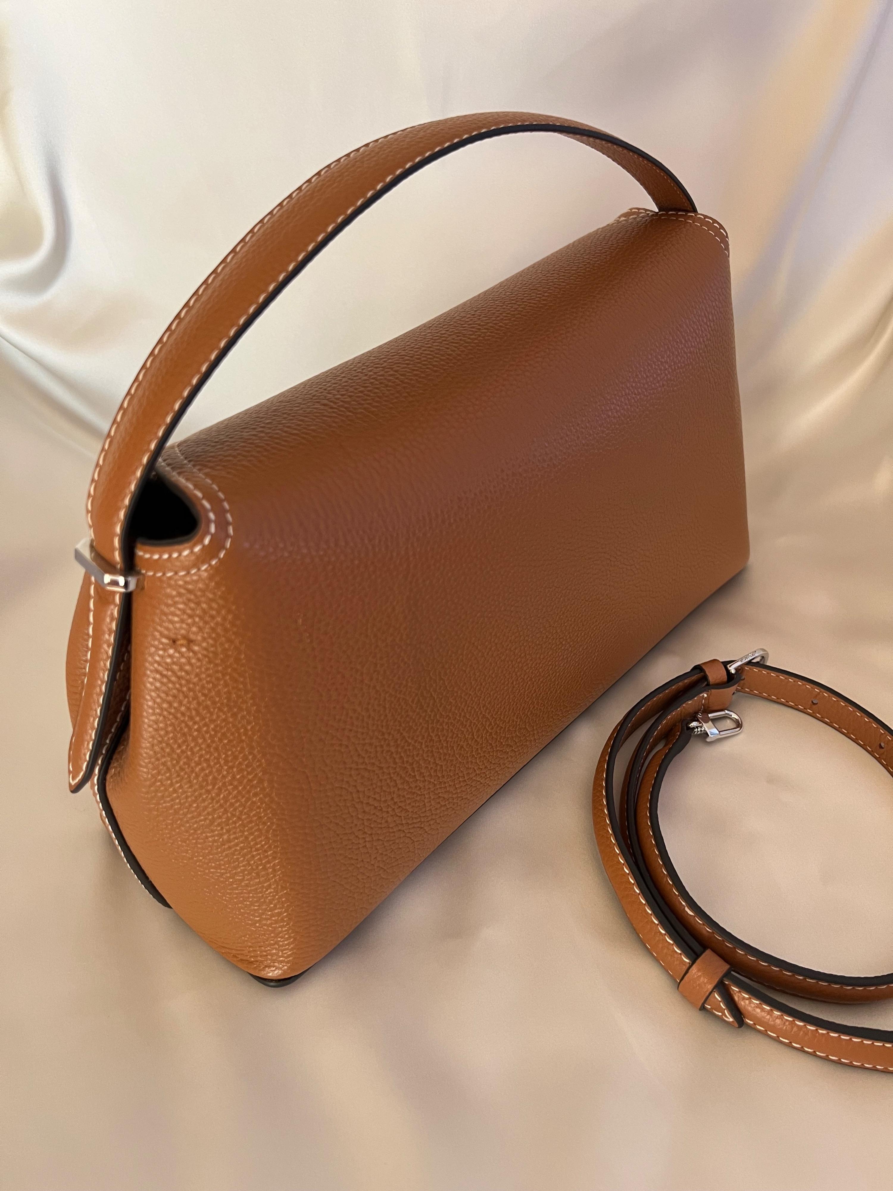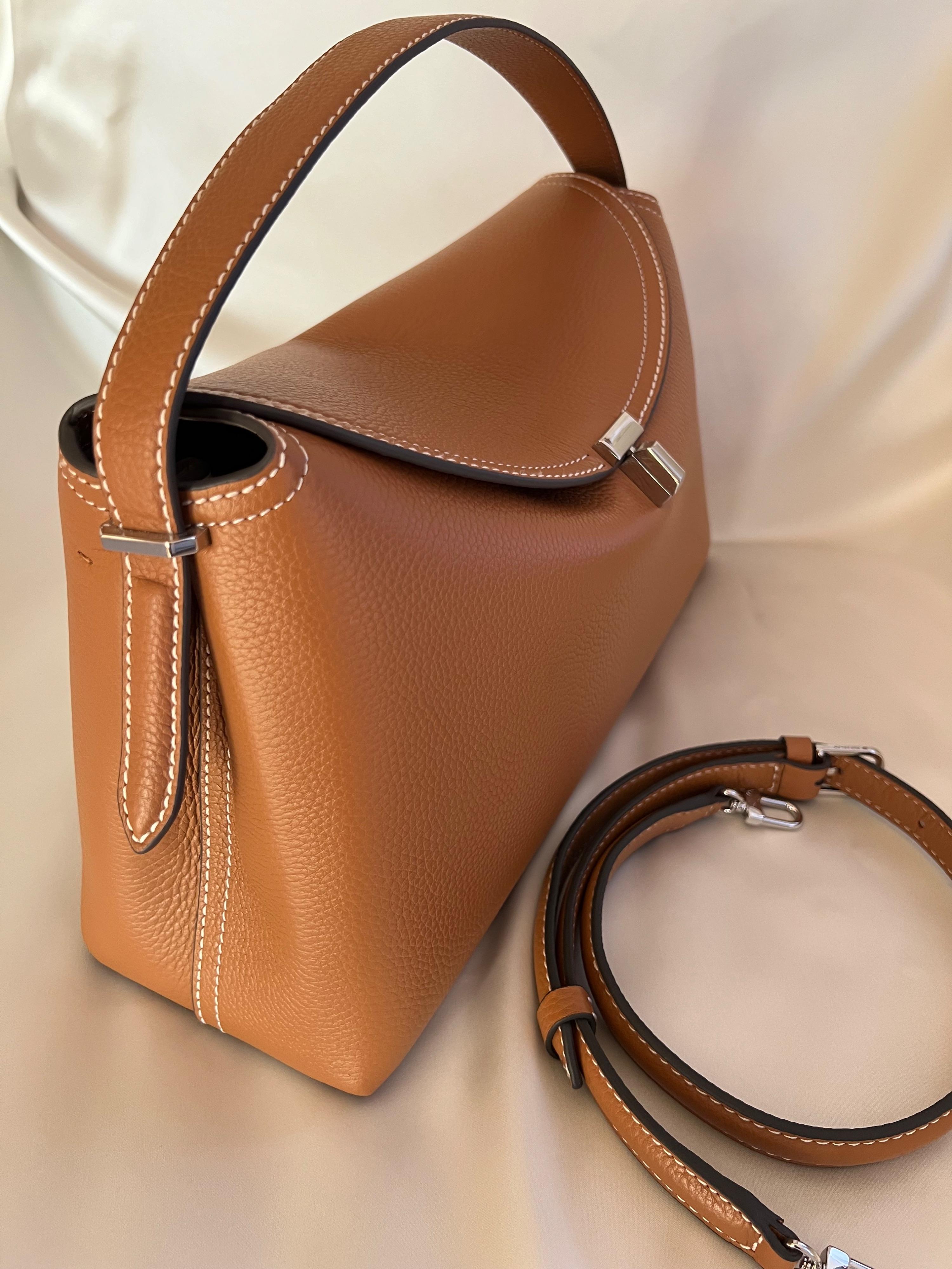 Totême T-Lock tan in grained leather with silver tone twist lock