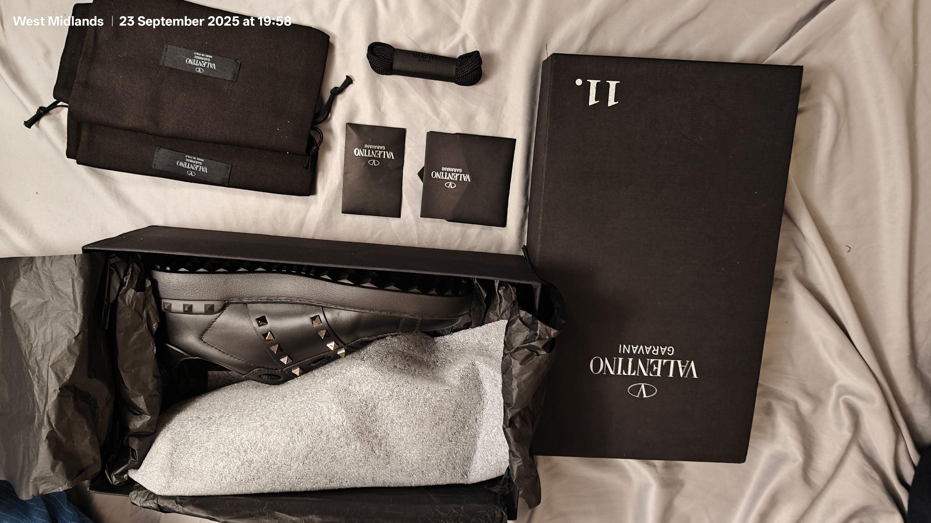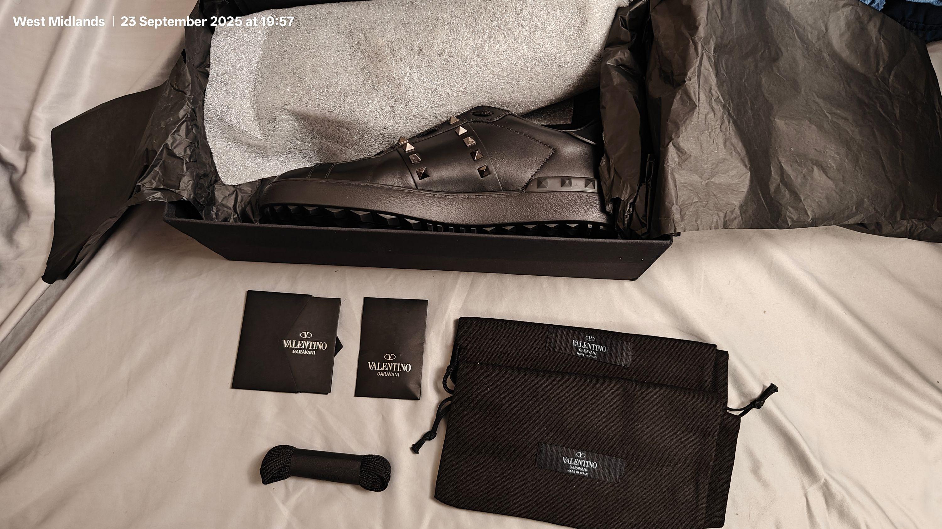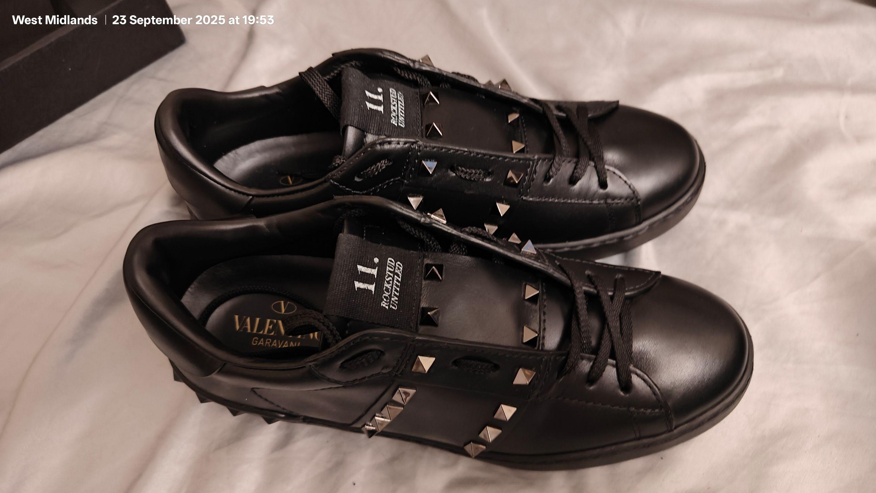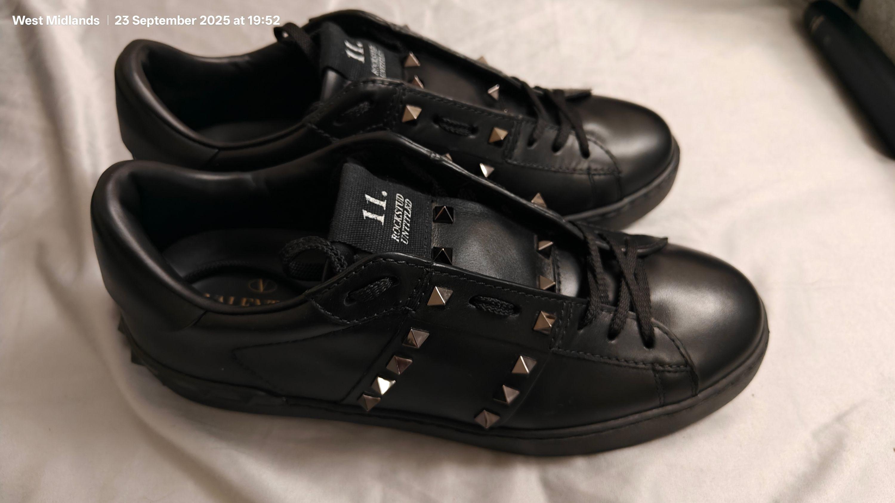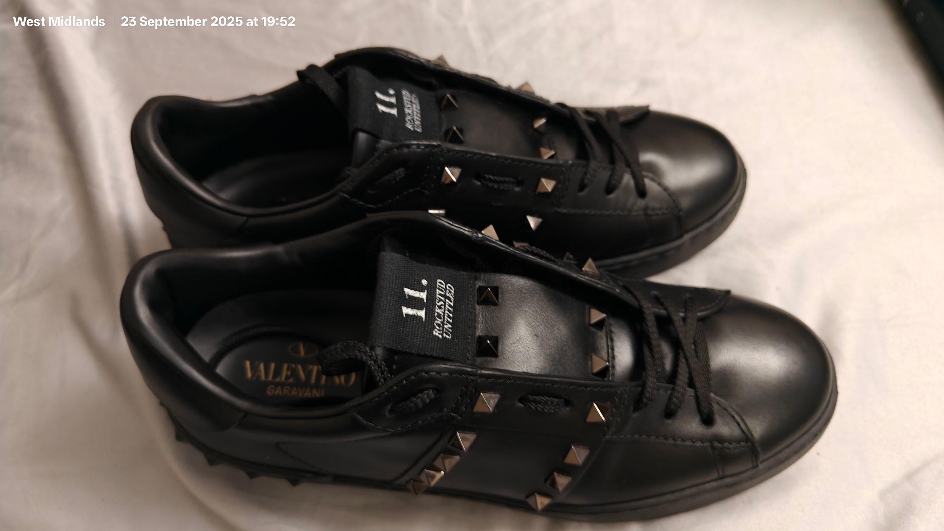 Untitled Rockstud sneakers in calfskin. RRP: £680.00. Brand new Valentino Garavani Untitled Rockstud sneakers in calfskin. - Stripes with studded applications in a ruthenium finish. - - Black rubber sole with rubber studs at the back. - Made in Italy.