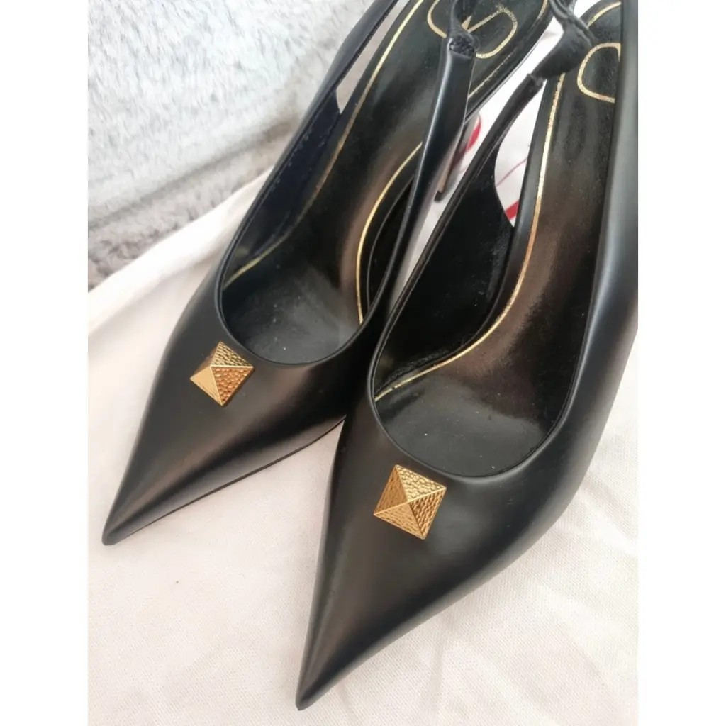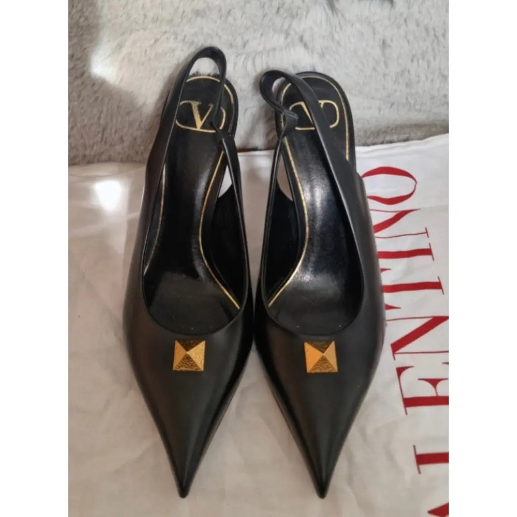 Valentino Garavani Roman Stud Black Leather Slingback Pumps