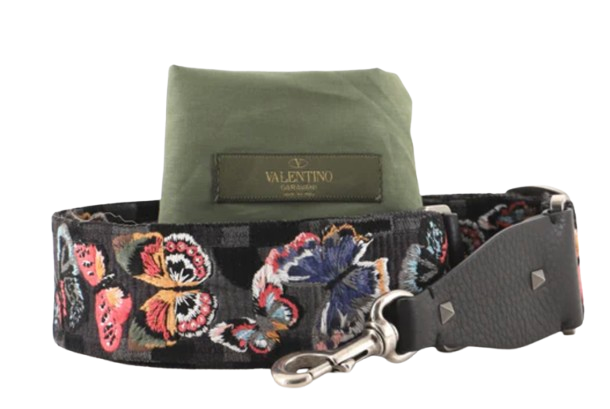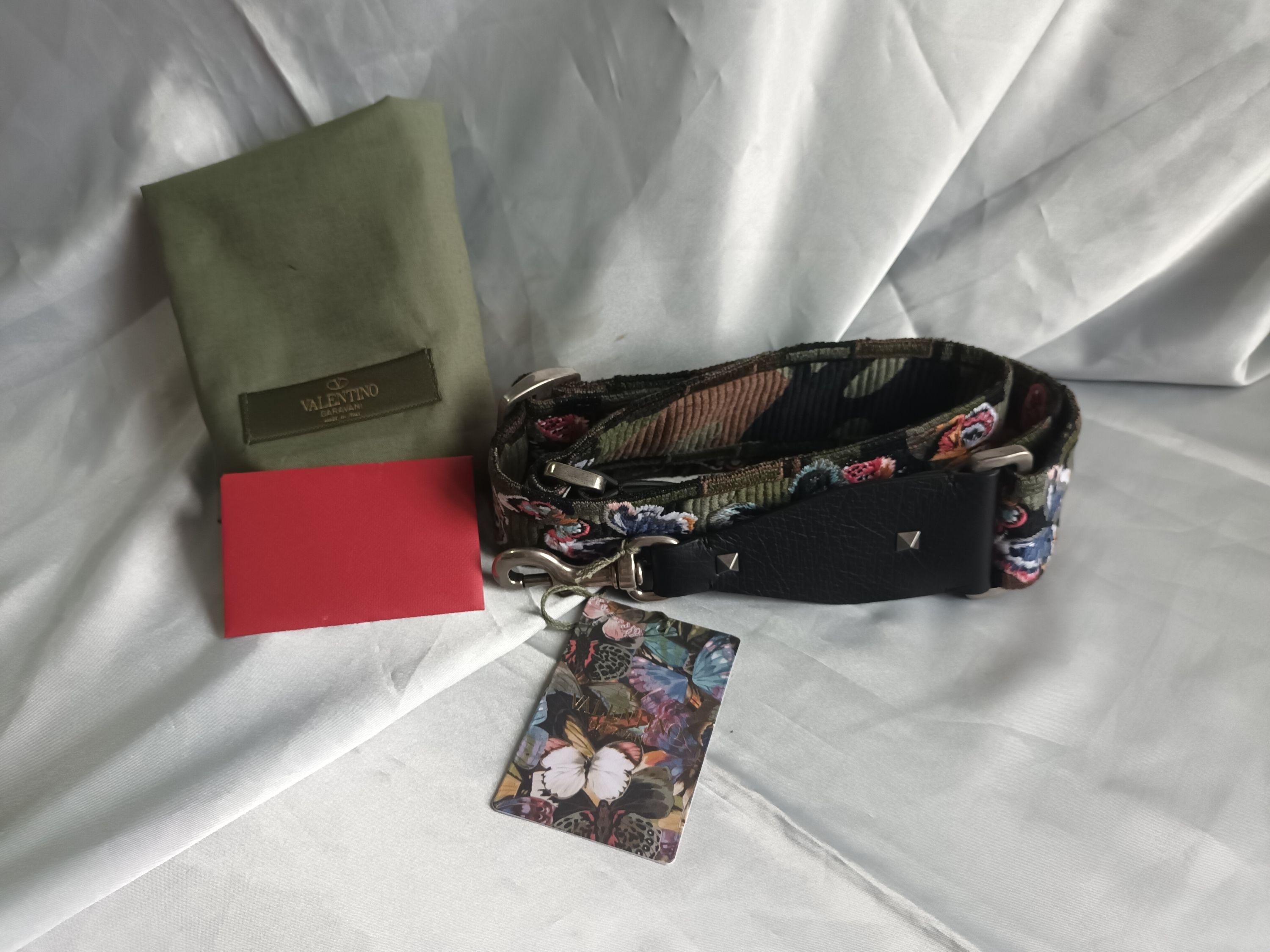 Valentino Garavani straps belt for bags. Native stitch pattern, with studded details, strap is adjustable for long or short length. Clip fastening. New, never worn, still in it original dust bag and box. Made in Italy.