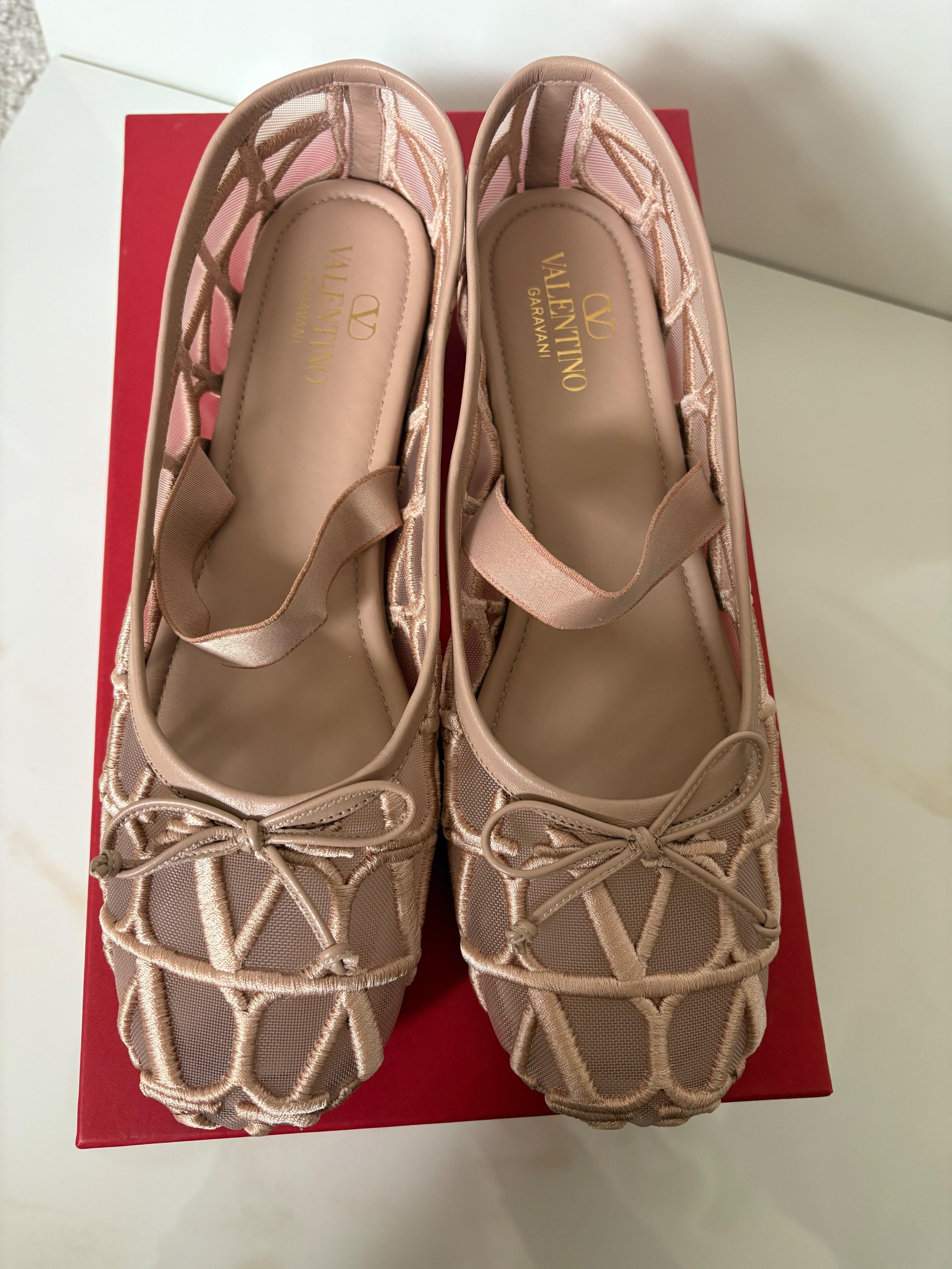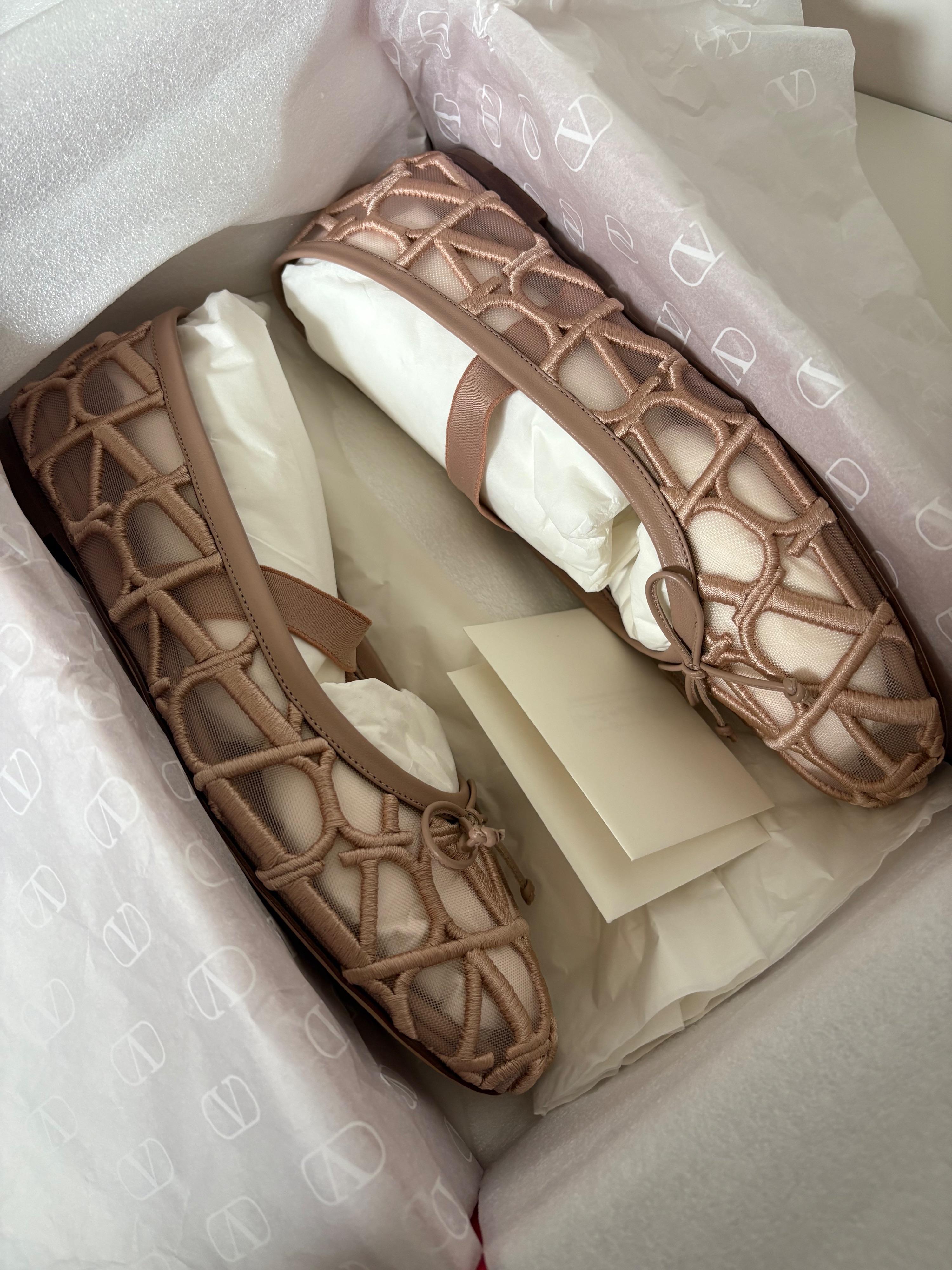 Valentino Rose Cannelle Toile Iconographie Ballet Flats