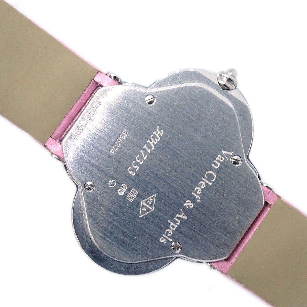 Van Cleef & Arpels Alhambra Quartz Watch White Gold and Satin with Diamond Bezel and Mother of Pearl 26