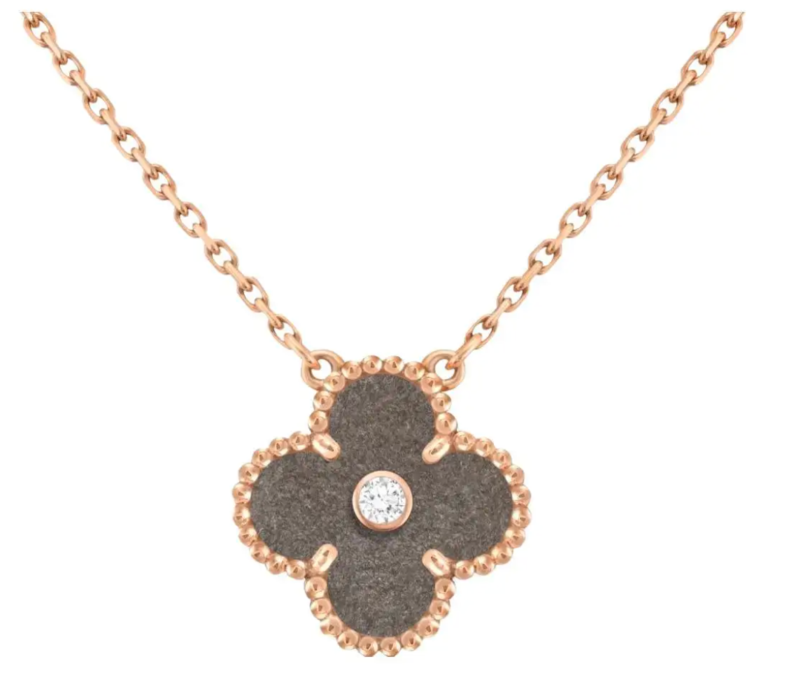 Van Cleef & Arpels Vintage Alhambra holiday pendant 2023 Obsidian and diamond. A limited edition 18k rose gold Silver Obsidian and diamond from the 2023 Holiday collection. The pendant features a beaded edge 4 leaf clover motif and a single bezel set round brilliant cut diamond, set to the centre weighing approximately 0.05ct. The pendant finishes with a lobster clasp and has a gross weight of 6.18 grams.