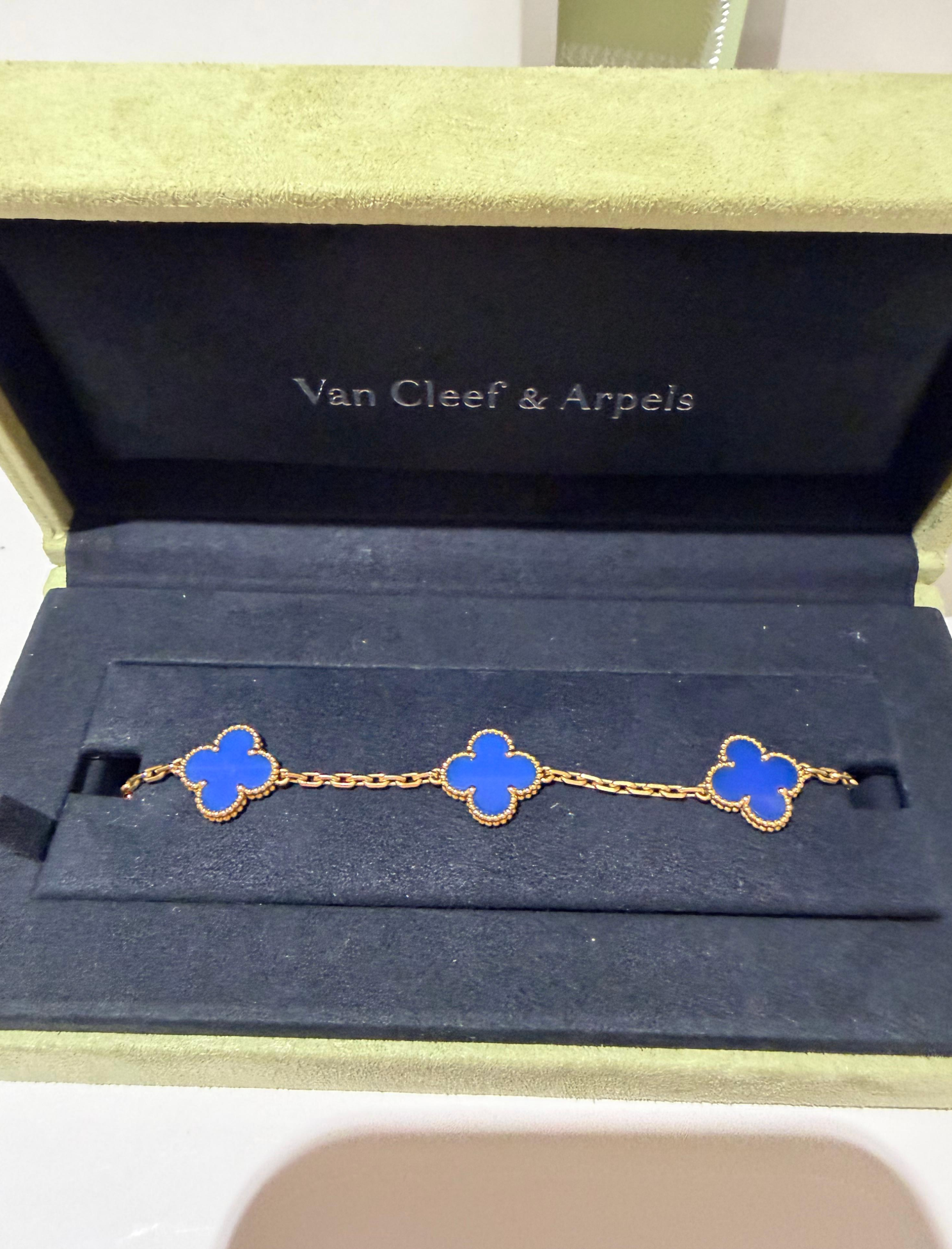 Van Cleef & Arpels vintage alhambra bracelet 5 motifs in blue agate