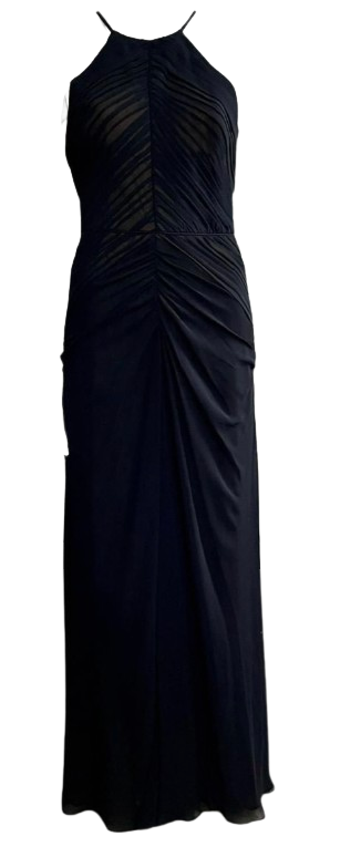 Vera Wang Black Ruched Chiffon Maxi Dress