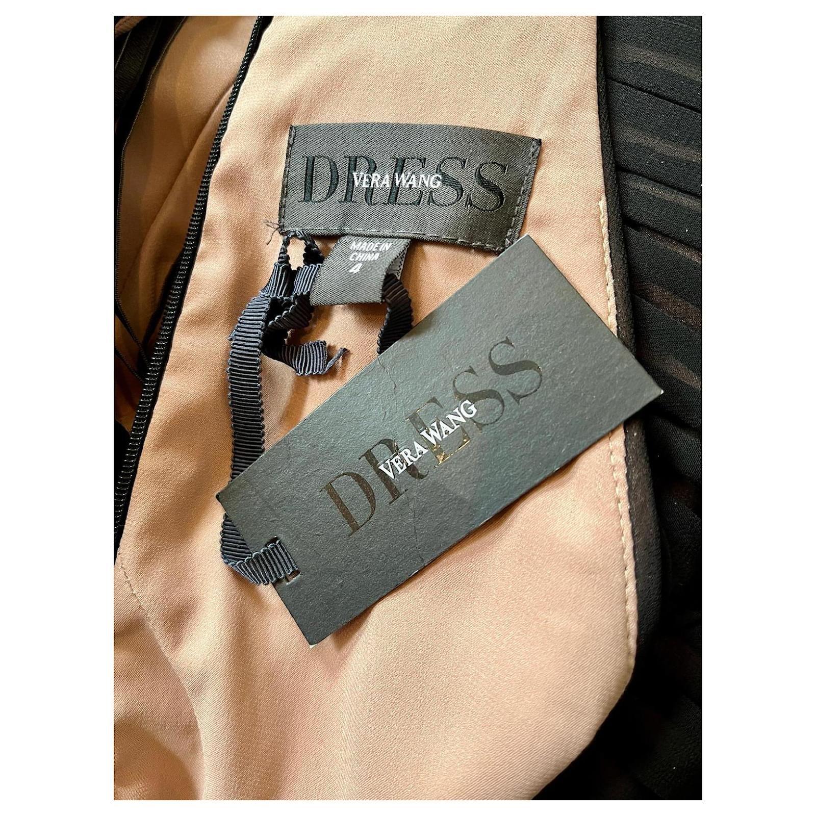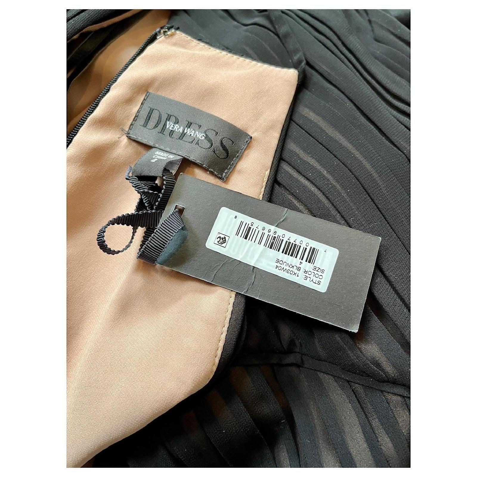 Vera Wang (main line) black chiffon evening gown with accordion pleads in a mock neckholder style, the dress has a small train, the black chiffon lining is over a nude lining so providing full coverage while keeping a very sexy look. It closes with a concealed zip in the back.