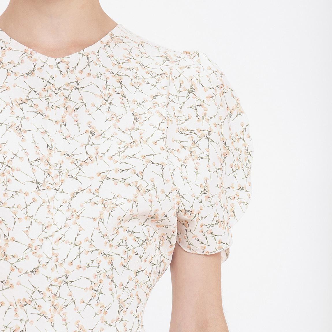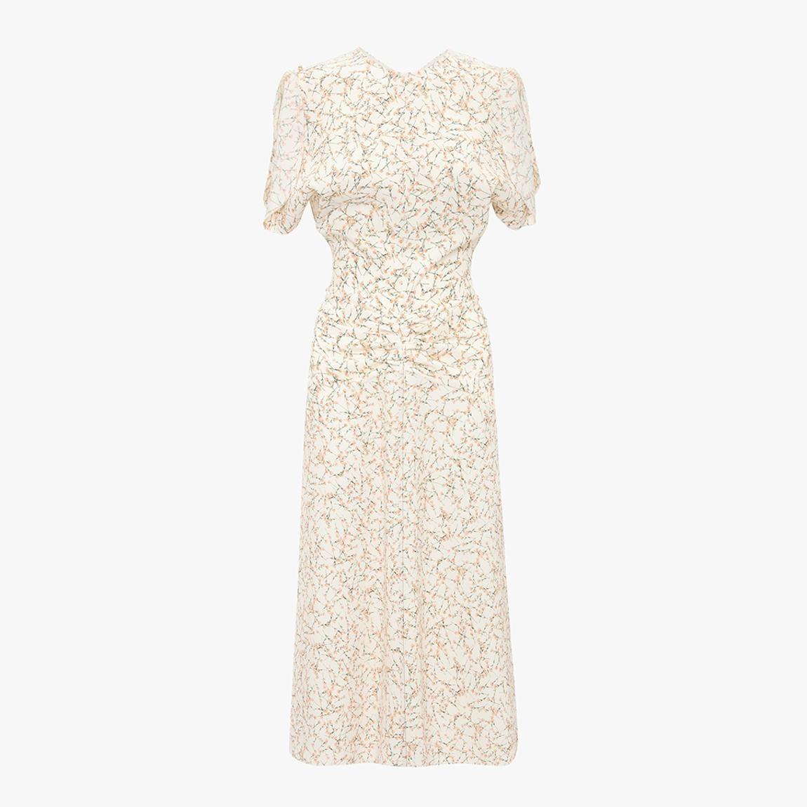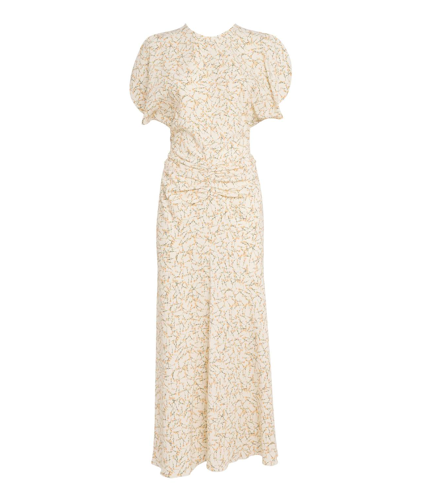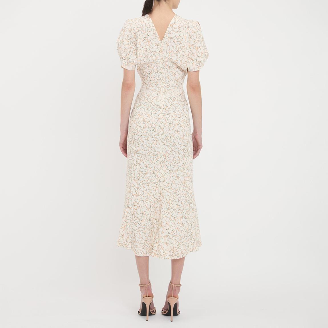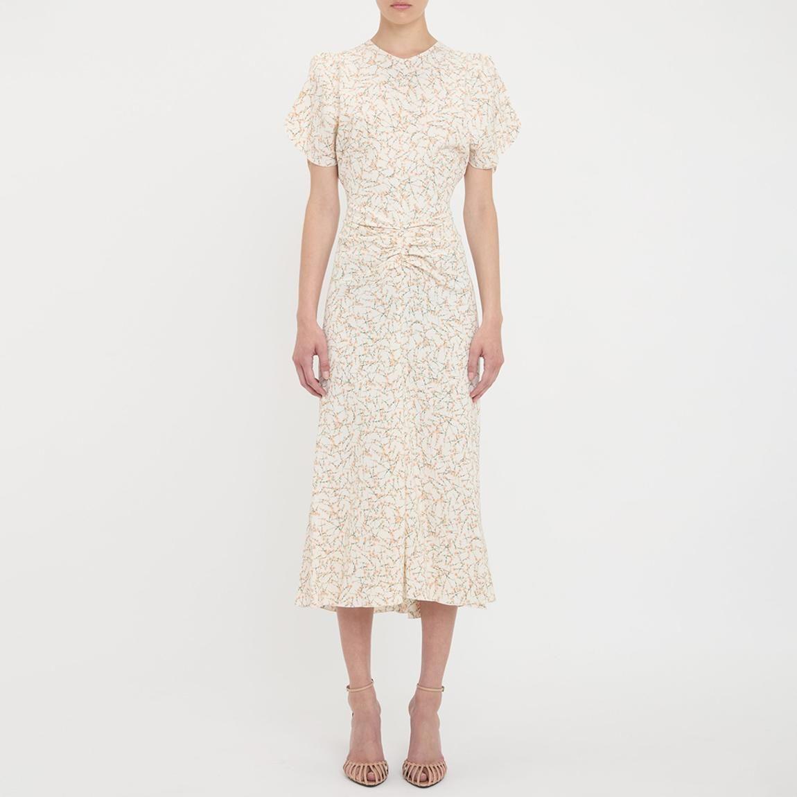 Victoria Beckham Cream Floral Gathered Waist Midi Dress
