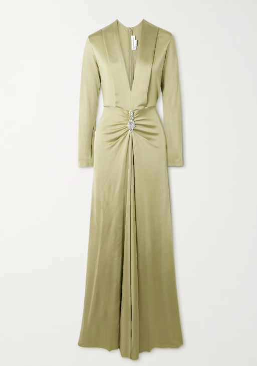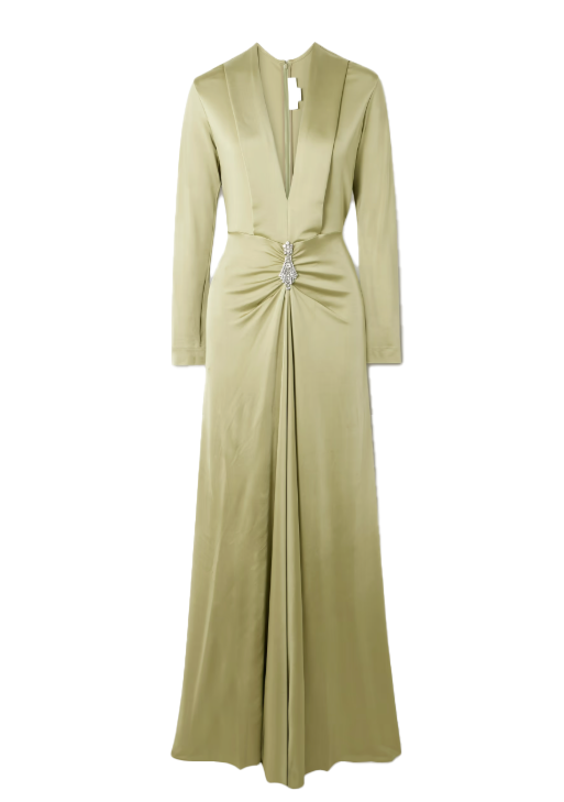 Victoria Beckham Crystal-Embellished Gathered Satin-Jersey Gown