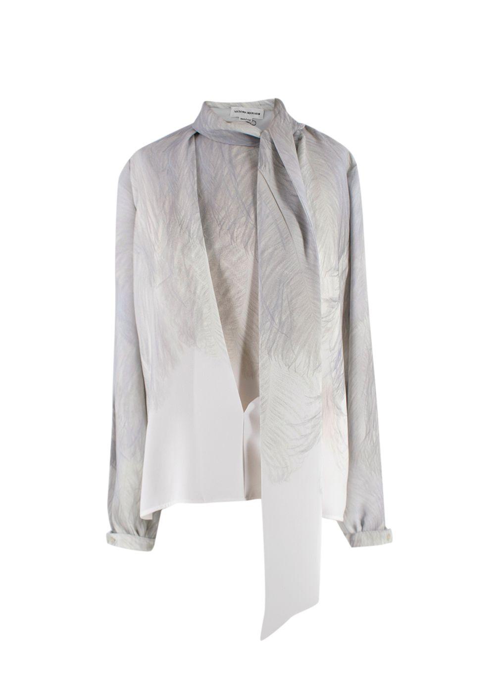 Victoria Beckham Digital Feather Print Scarf Neck Blouse
