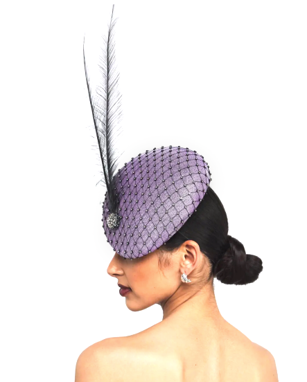 This fascinator from Victoria Grant features slim black feathers and a base covered in crystal-embellished mesh.