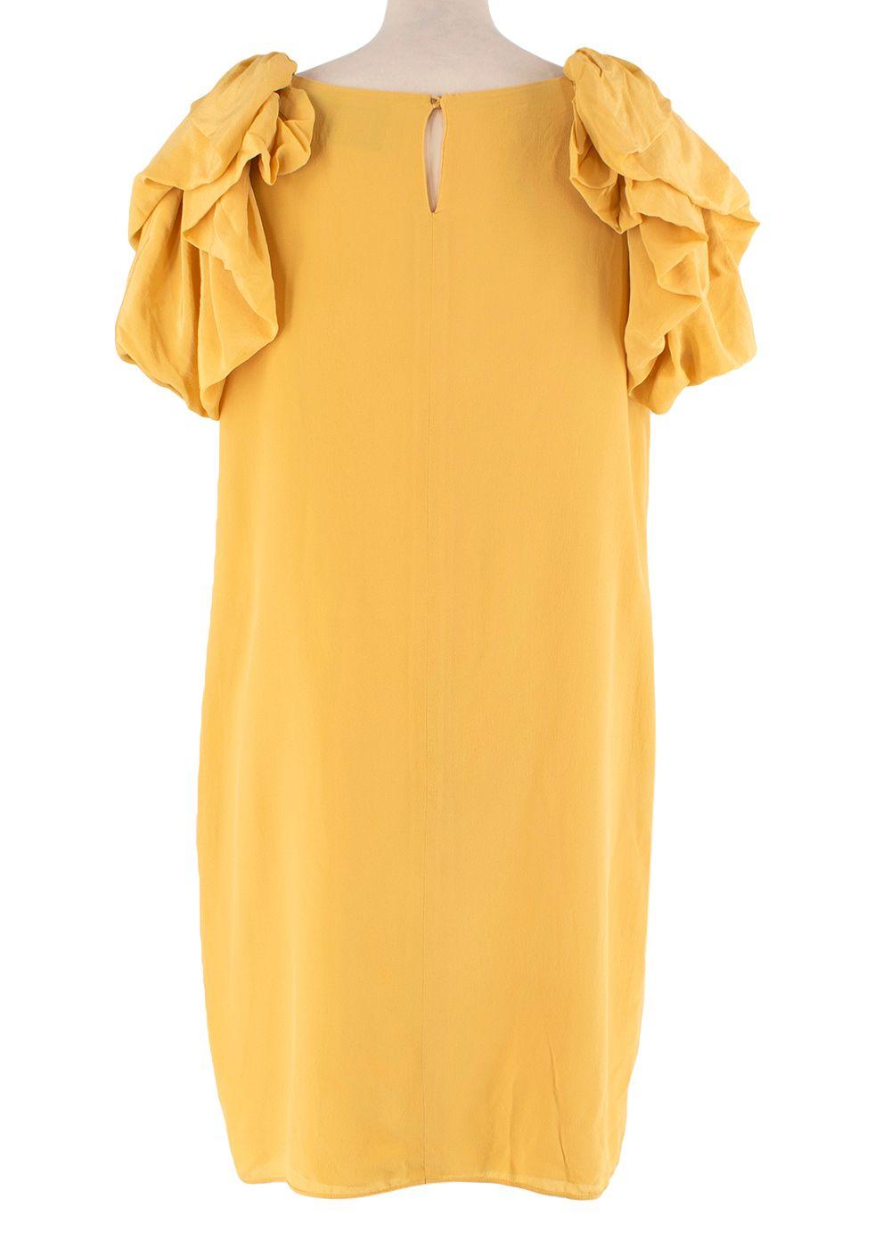 Valentino Yellow Ruched Shoulder Silk Dress