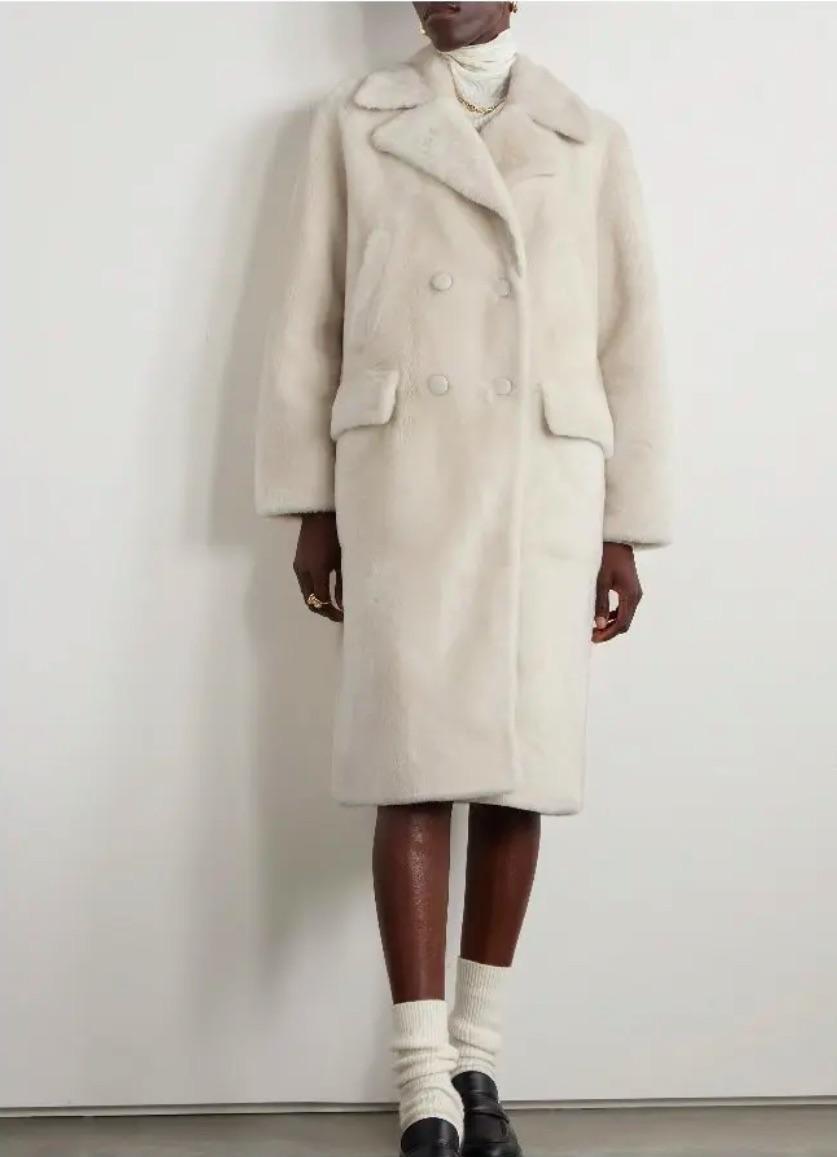 Yves Salomon's coat has been made in France from plush, insulating 100% lamb shearling in a grey hue. It's designed in a double-breasted silhouette with covered buttons.