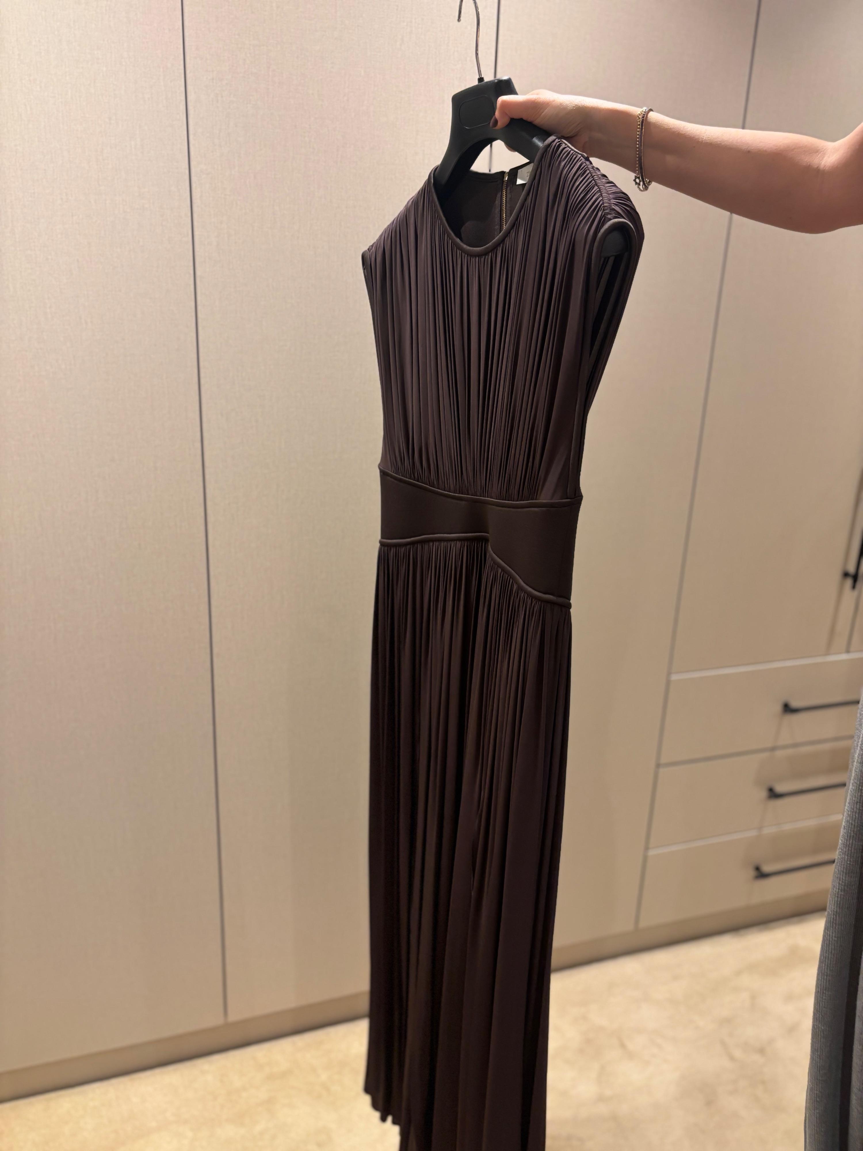 Current season chocolate brown stretch jersey evening dress worn once and specialist cleaned. Slits slightly sewn up as were to high thigh and now mid thigh. The ‘illuminate’ dress has a gathered design and a fitted curved waist band to cinch you in! It has two front splits and a gorgeous movement to the skirt.